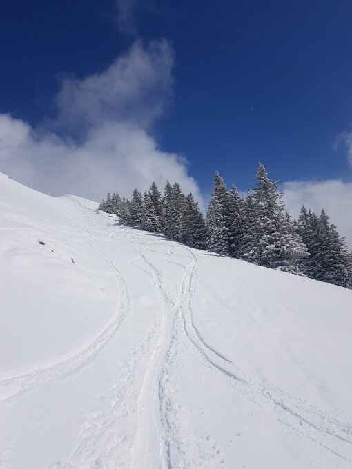 Eigentlich ist eine ST auf den HG nicht "informationswürdig". Mein Eintrag ist mehr als Datums-Dokumentation "Neuschnee/Pulverschnee/ tiefwinterliche Verhältnisse - am 13. April. 2021" zu sehen.