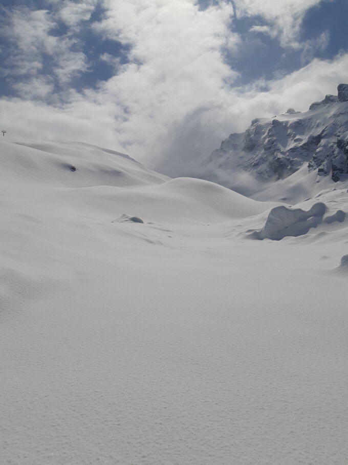 ....1200 Höhenmeter Pulverschnee, oben Powder...weiter unten etwas schwerer aber immer noch top zum fahren