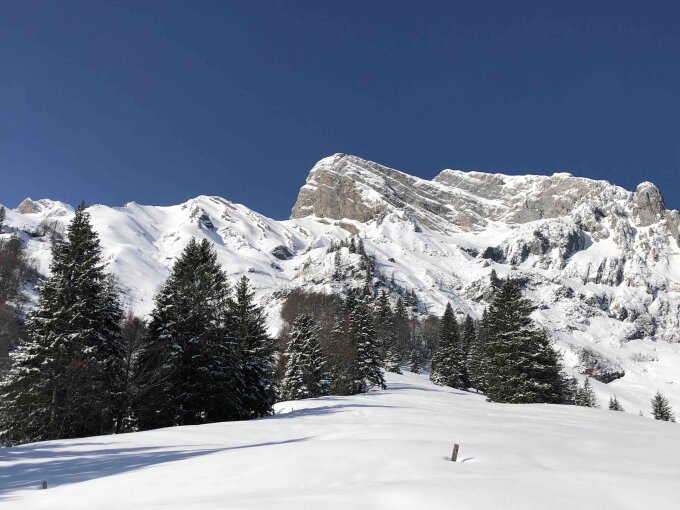 Bin um 8:45 Uhr los bei bestem Wetter und war um 11:15 Uhr am Gipfel. Unten ca 15 Minuten tragen (150 Hm). Ab ca. 1300m feiner Pulver, 15cm - 20cm. Kette zum Gipfelgrat frei. Kleine Neuschneerutsche bei der Abfahrt ausgelöst, nichts Ernstes. Vielen Dank an meine Vorgänger für die Spur!