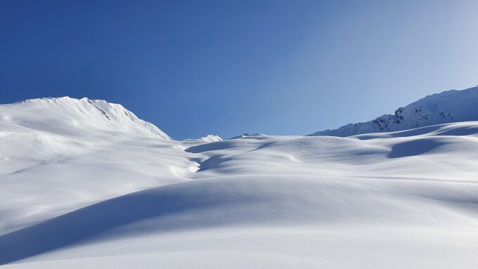 Ab Passstrasse immer noch ausreichend Schnee. Wird bei Tageserwärmung und nächtlicher Abstrahlung einen Deckel resp. Bruchharst geben bis sich der Neuschnee wieder gesetzt hat.