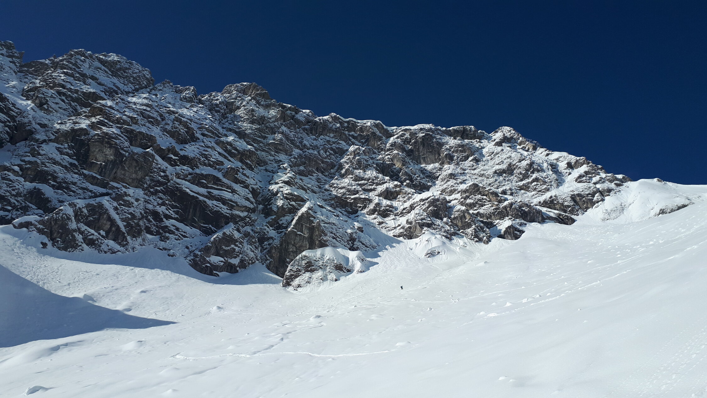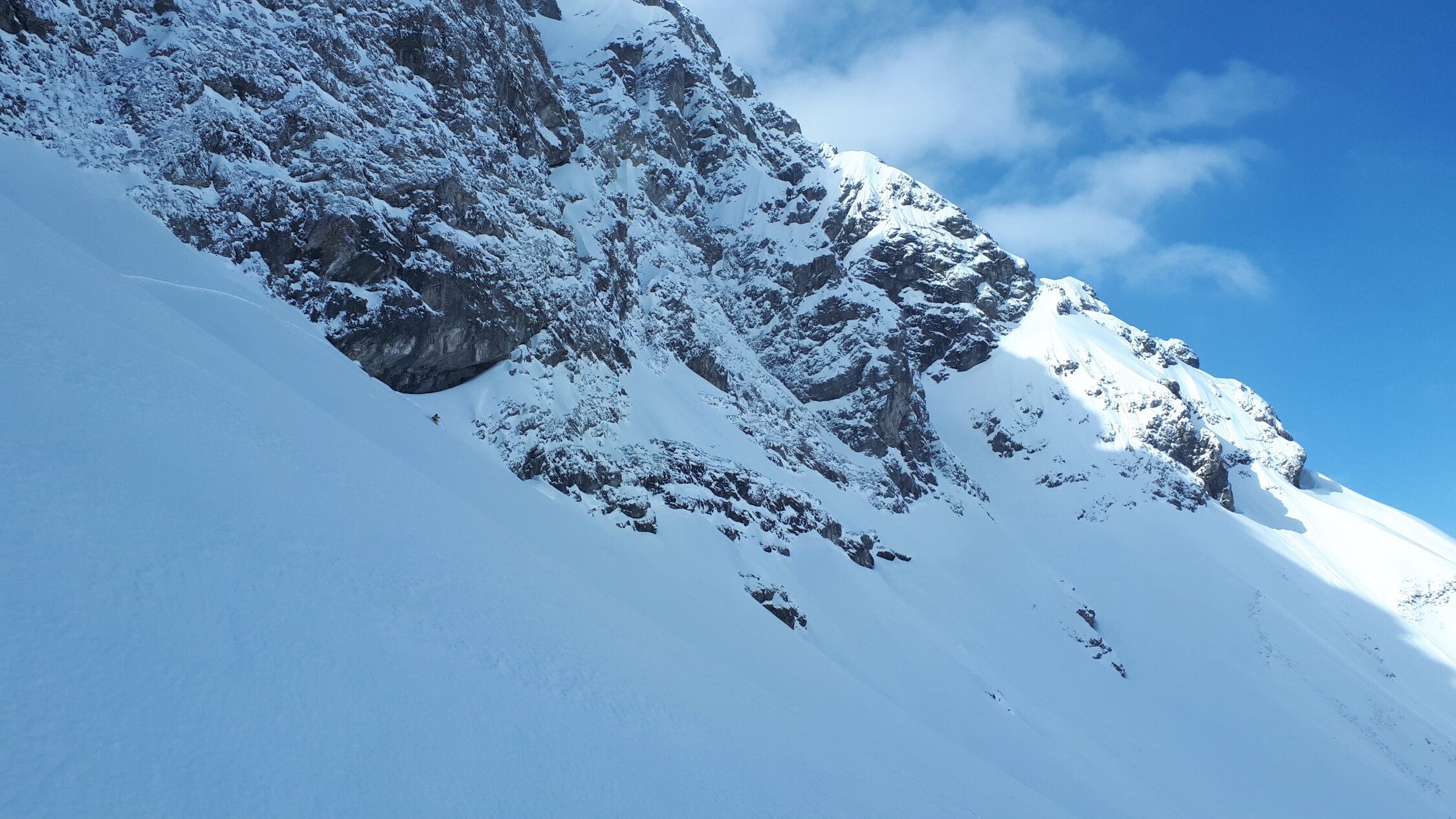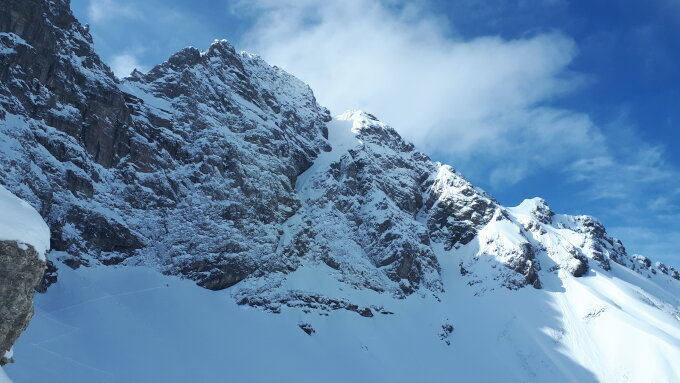 Schon morgens Lockerschneerutsche aus dem felsigen Gelände von Widderstein und kleinem Widderstein. Siehe https://www.facebook.com/100007932570966/videos/2901152533492471/