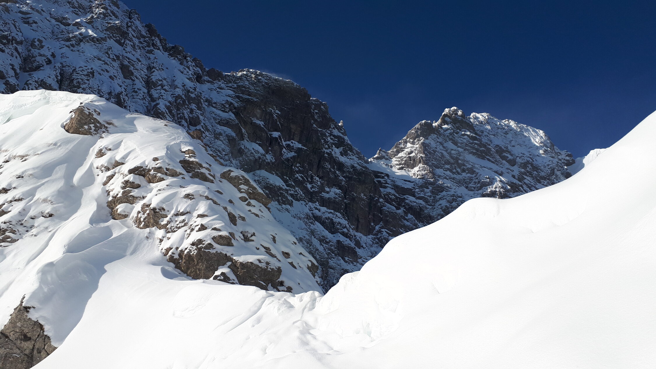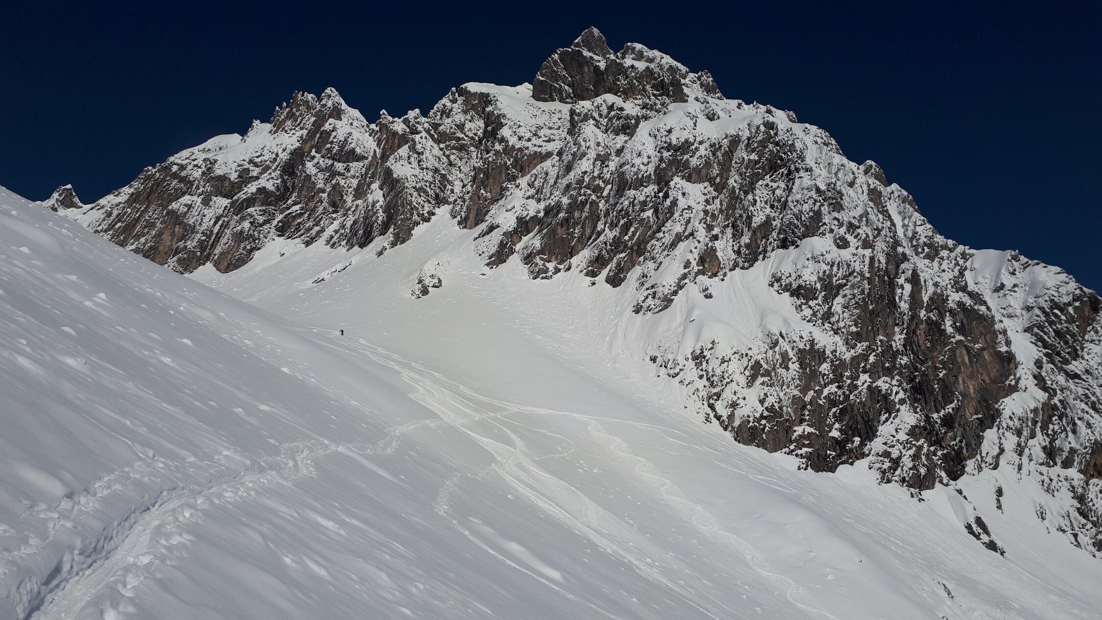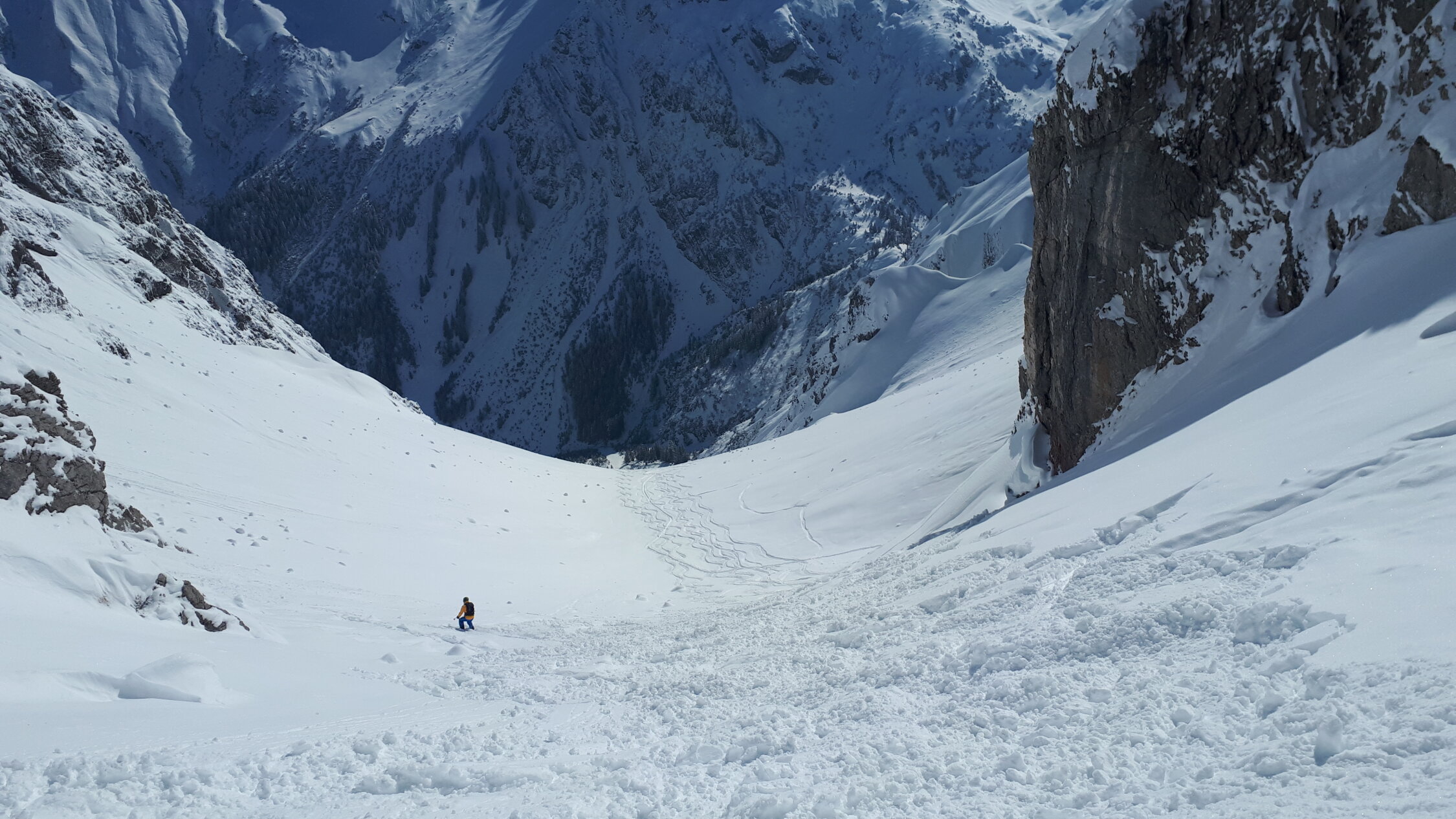 Schon morgens Lockerschneerutsche aus dem felsigen Gelände von Widderstein und kleinem Widderstein. Siehe https://www.facebook.com/100007932570966/videos/2901152533492471/