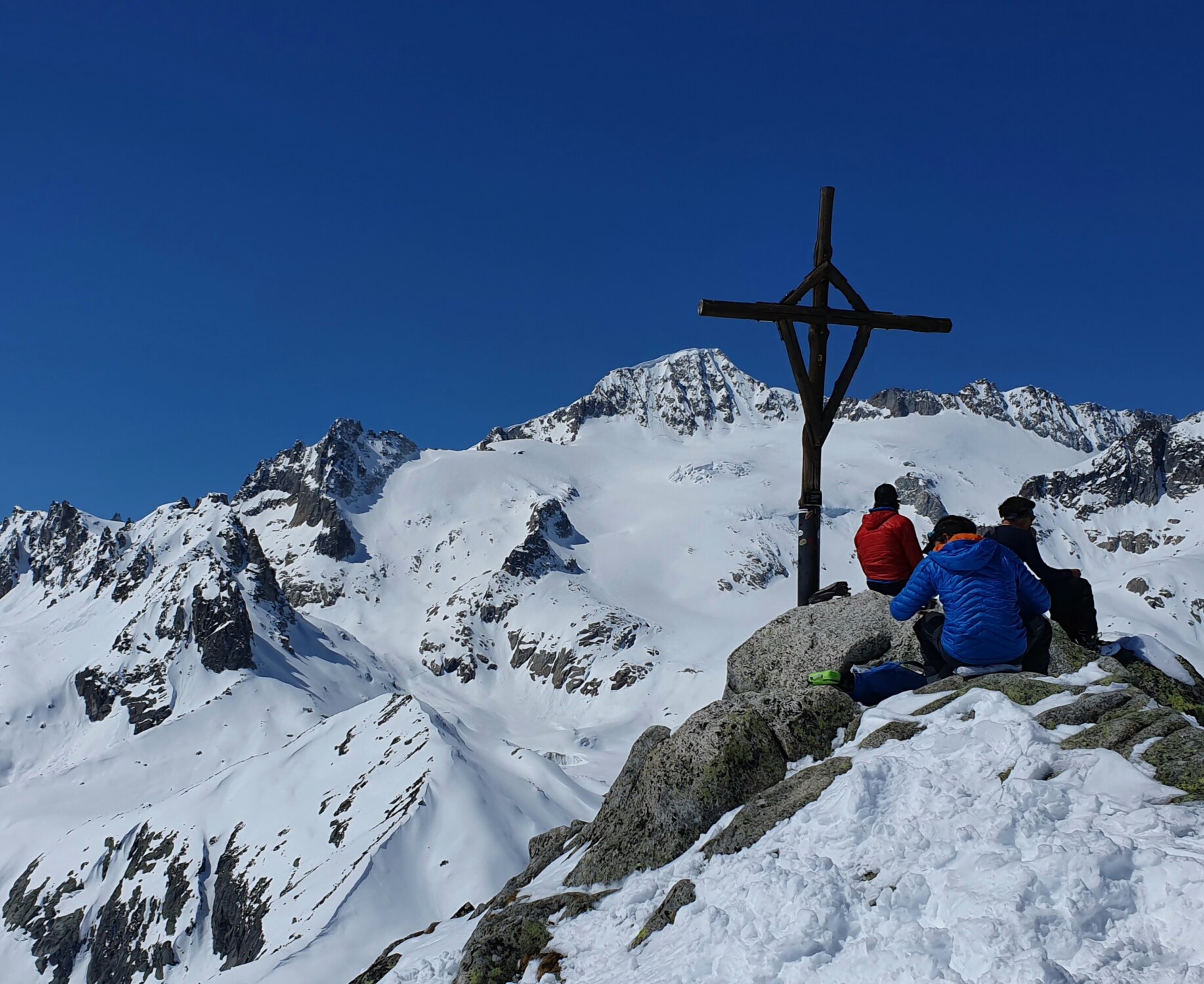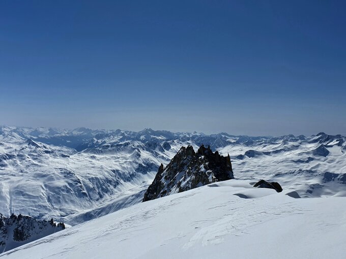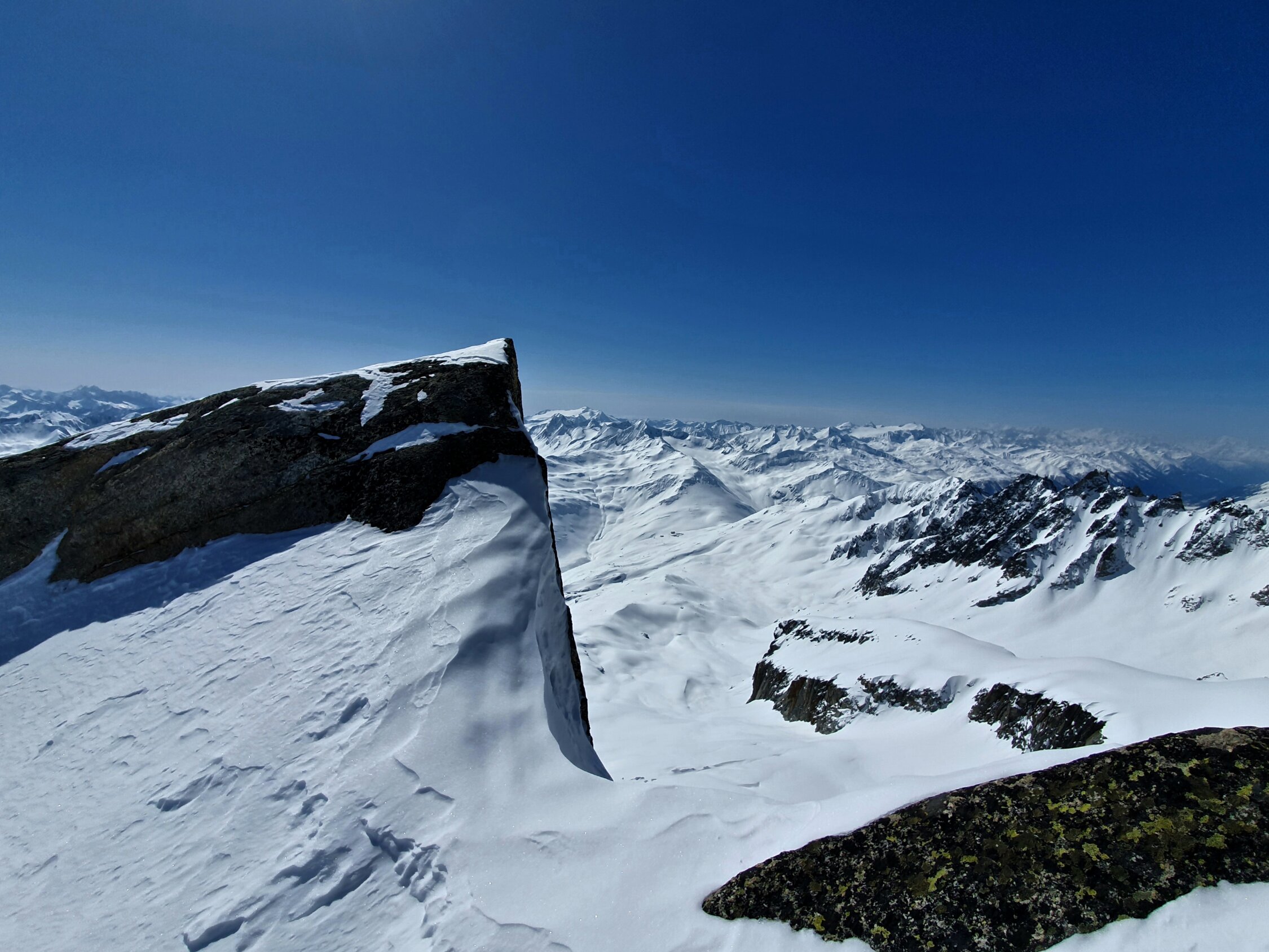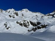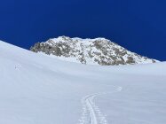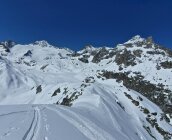 Da es so schön war, noch via Albert Heim Hütte auf den Schafberg. Auch die Abfahrt auf der dortigen Normalroute ganz gut. An von der Sonne abgekehrten Hängen noch bester Pulver. Weiter unten leicht angesulzt und bis ins Tal sehr angenehm zu fahren.