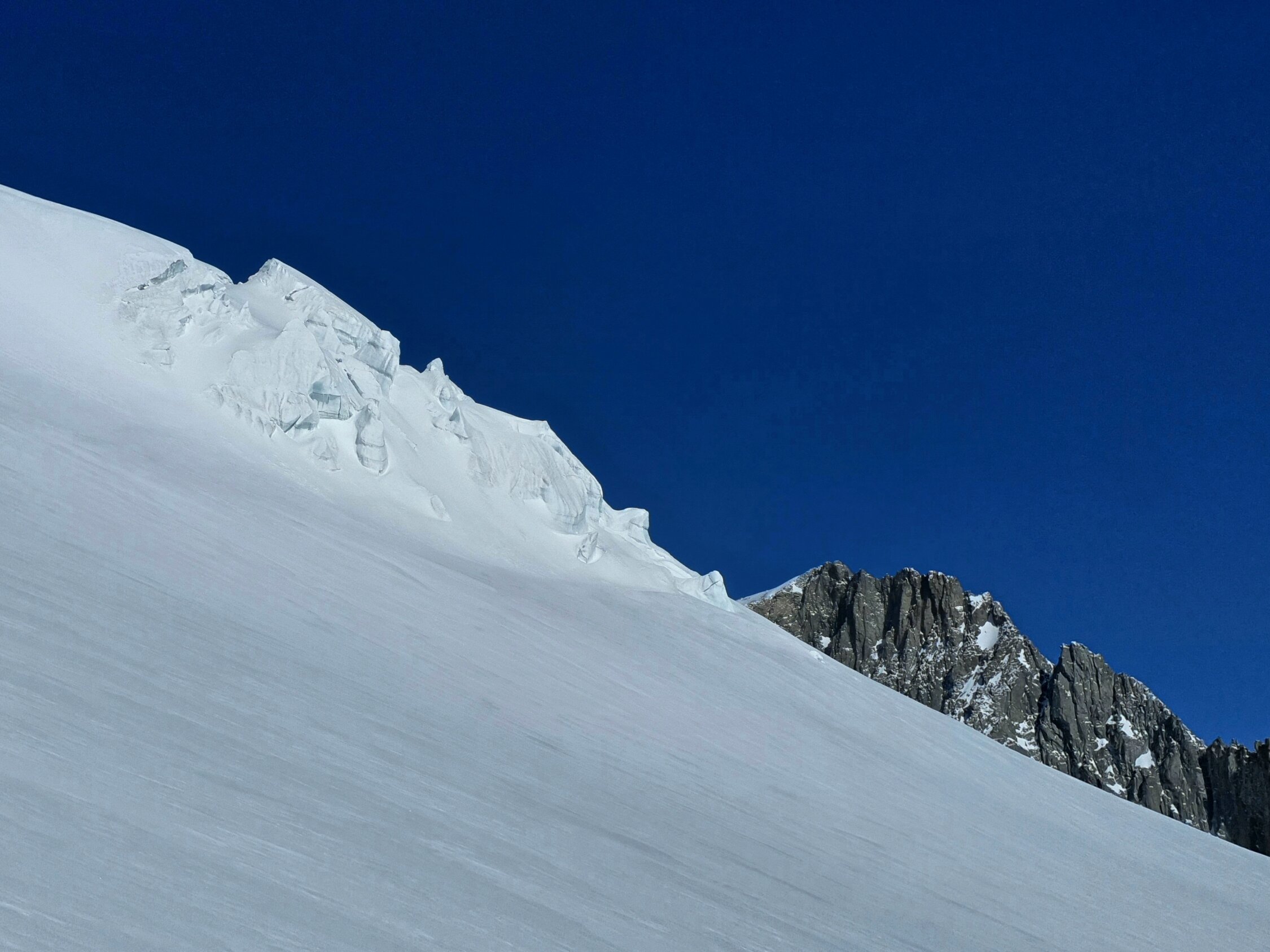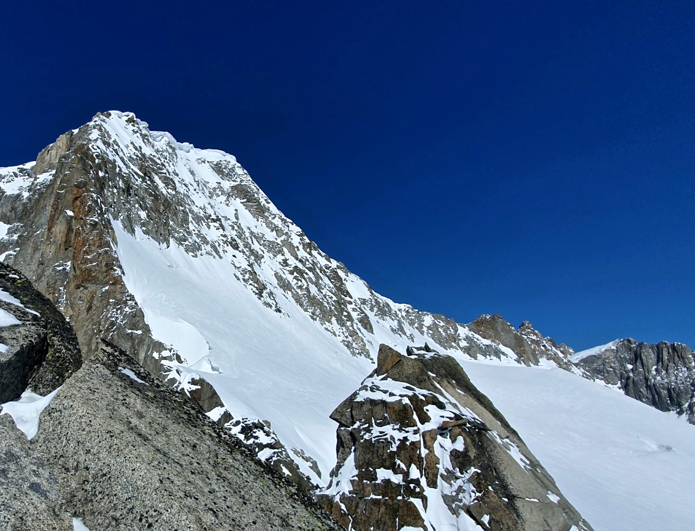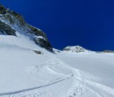 Die Abfahrt über den Gletscher super. Wir hielten uns an die rechte Seite (entlang des Gross Bielenhorn), da hier bester Powder vorhanden war.