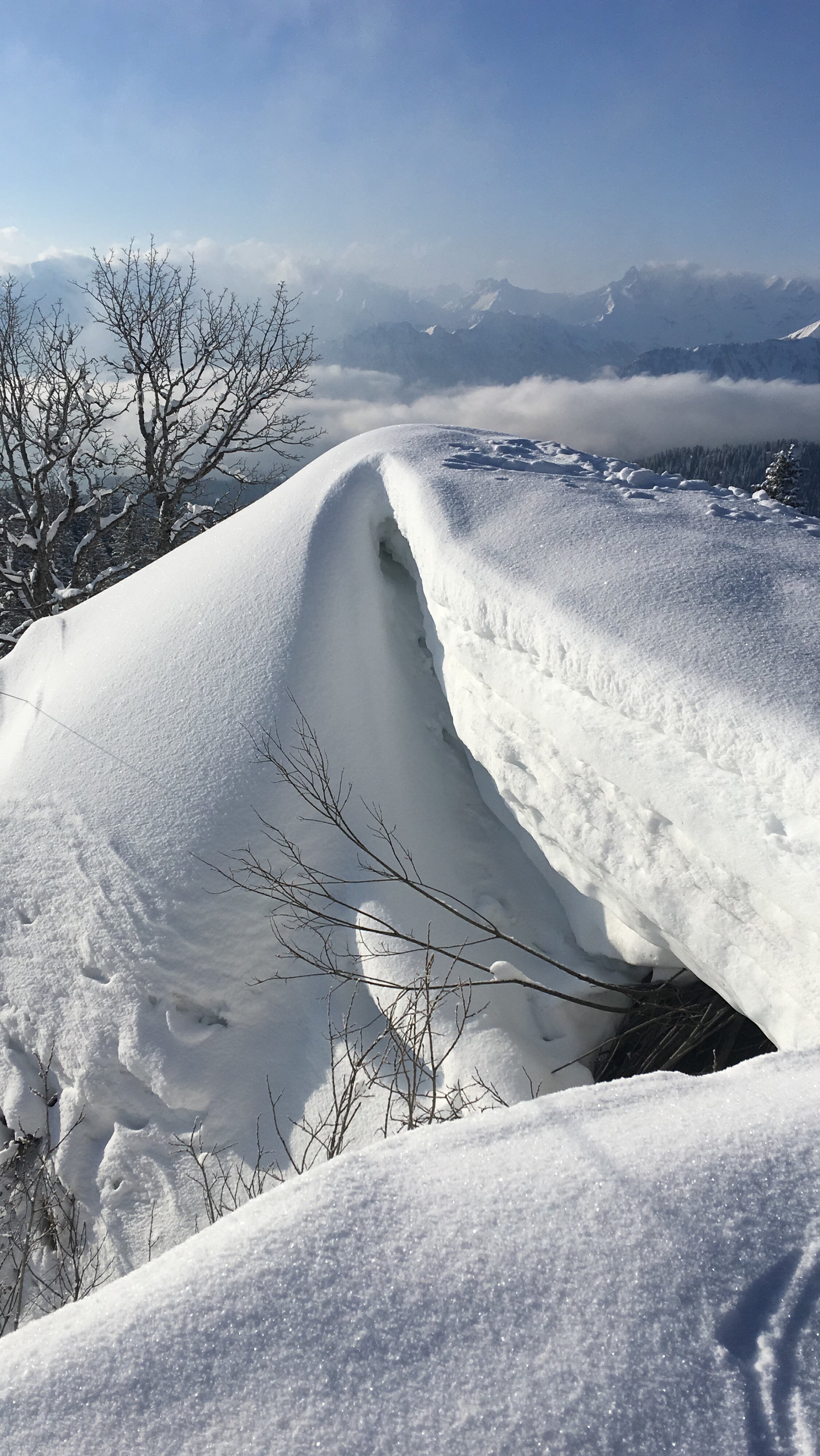 Grasgehren-Wannenkopf- 350 hm runter Richtung maiselstein-bolgengrat- bolgental-ochsenkppf- riedi- ne runter 300hm-riedi-grasgehren. Schnee Qualität von 15 cm. Pulver, bis hart und haklig alles dabei. Gilt für alle Höhenlage. Im Wald/schattig auf 1300 m oft längere Pulver strecken. Kein firn. Kalt bis kühl. Außer 1 km Radius vom riedi wenig Leute