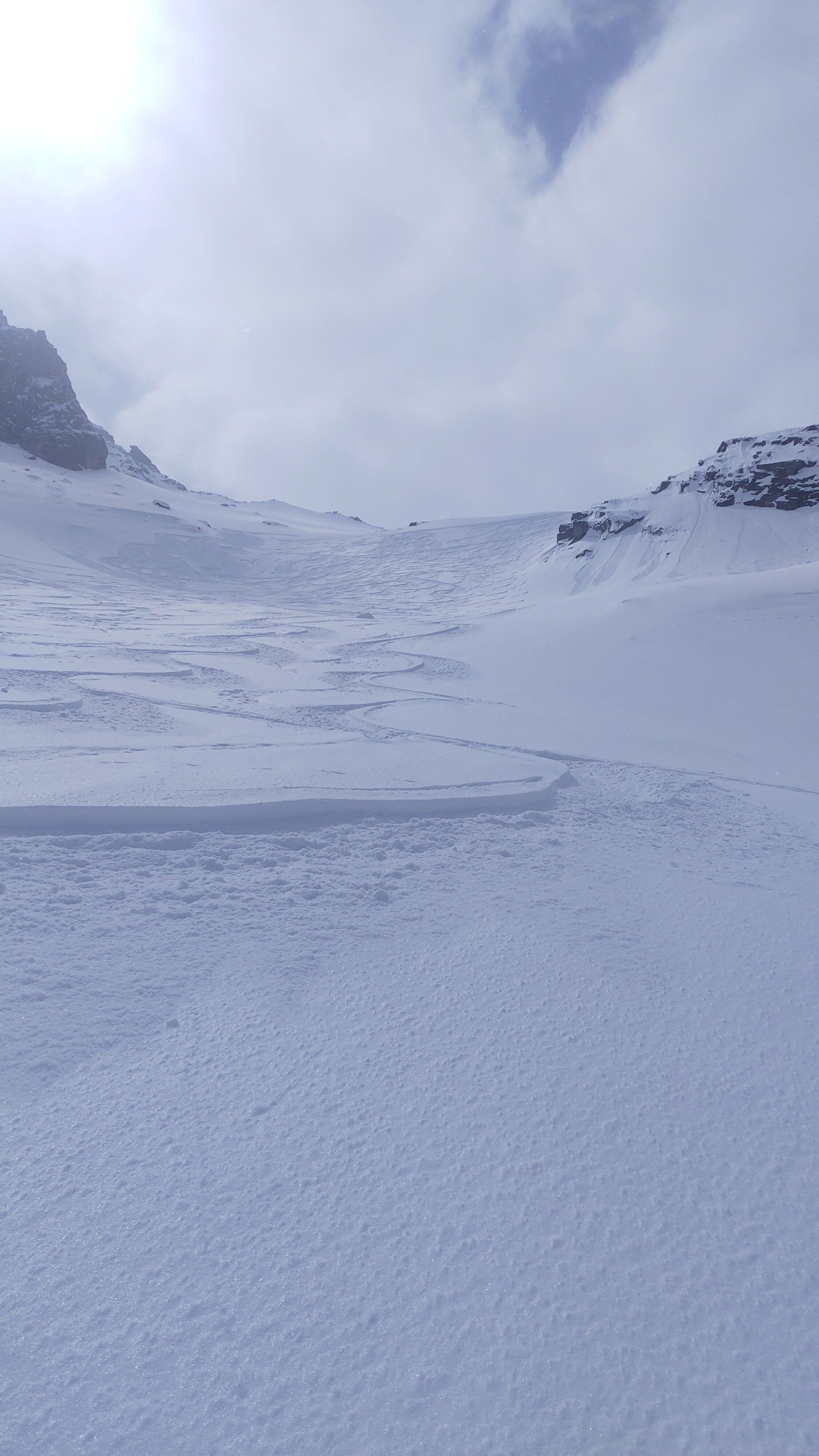 Abfahrt nach Gwüest in Pulverschnee. Aufgestiegen zum Gasthaus Göscheneralp (www.gasthaus-goescheneralp.ch)