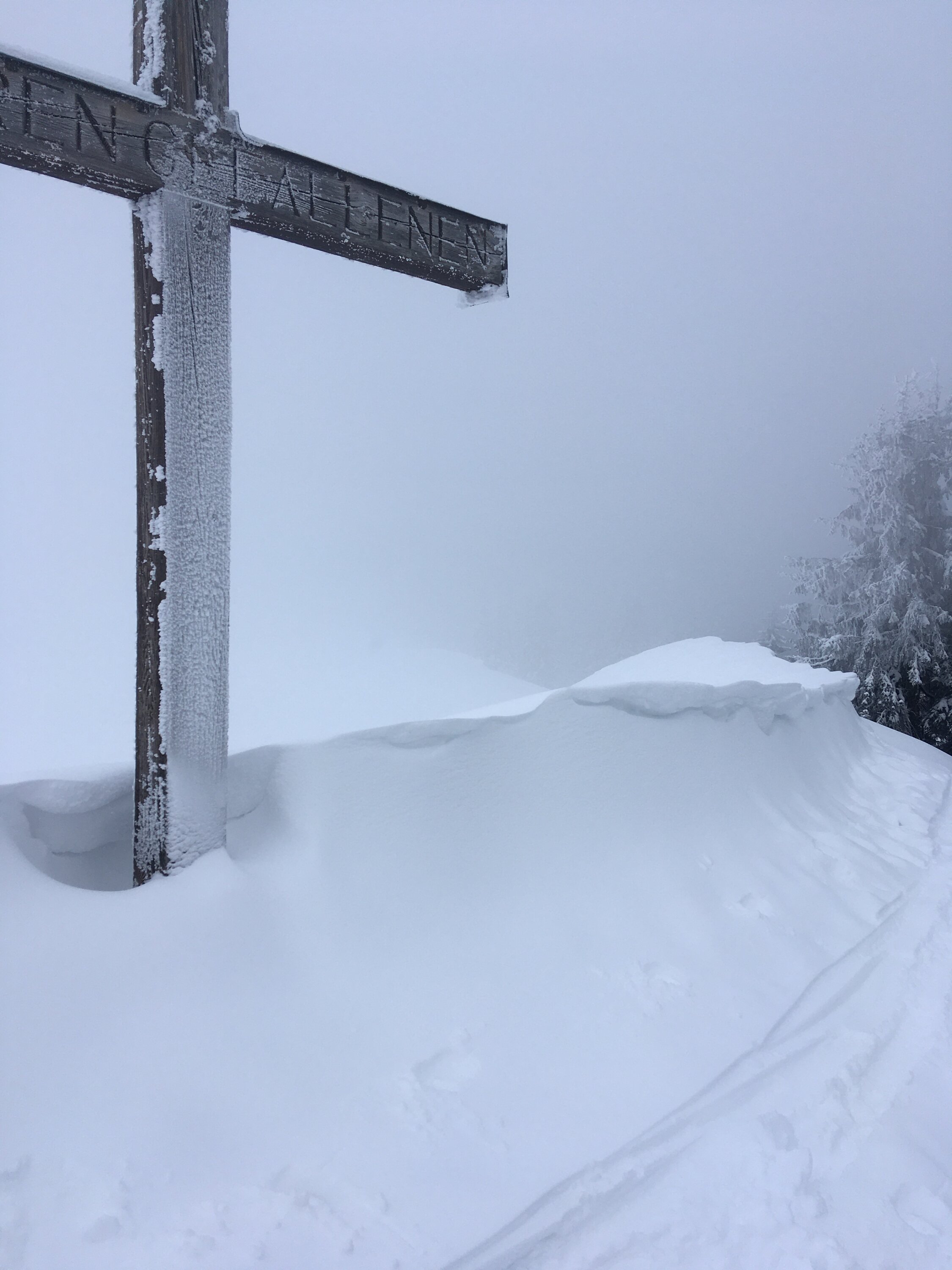 Weil es so schön war gestern. Grasgehren - riedi - nw runter- 3Fahnen-Bleicherhorn- Grauenstein-riedi-Schönberg Alp-Besler- grasgehren. Kalt und windig und keine Konturen. Anstieg Höllritzer und 3Fahnen keine spur und somit zäh. Oben am grat Bleicherhorn Wächten von Nordwind, so noch nie gesehen.Schnee Qualität wie gestern. Besler super Spur. Abfahrt leider nicht der Genus. Schnee schwer .