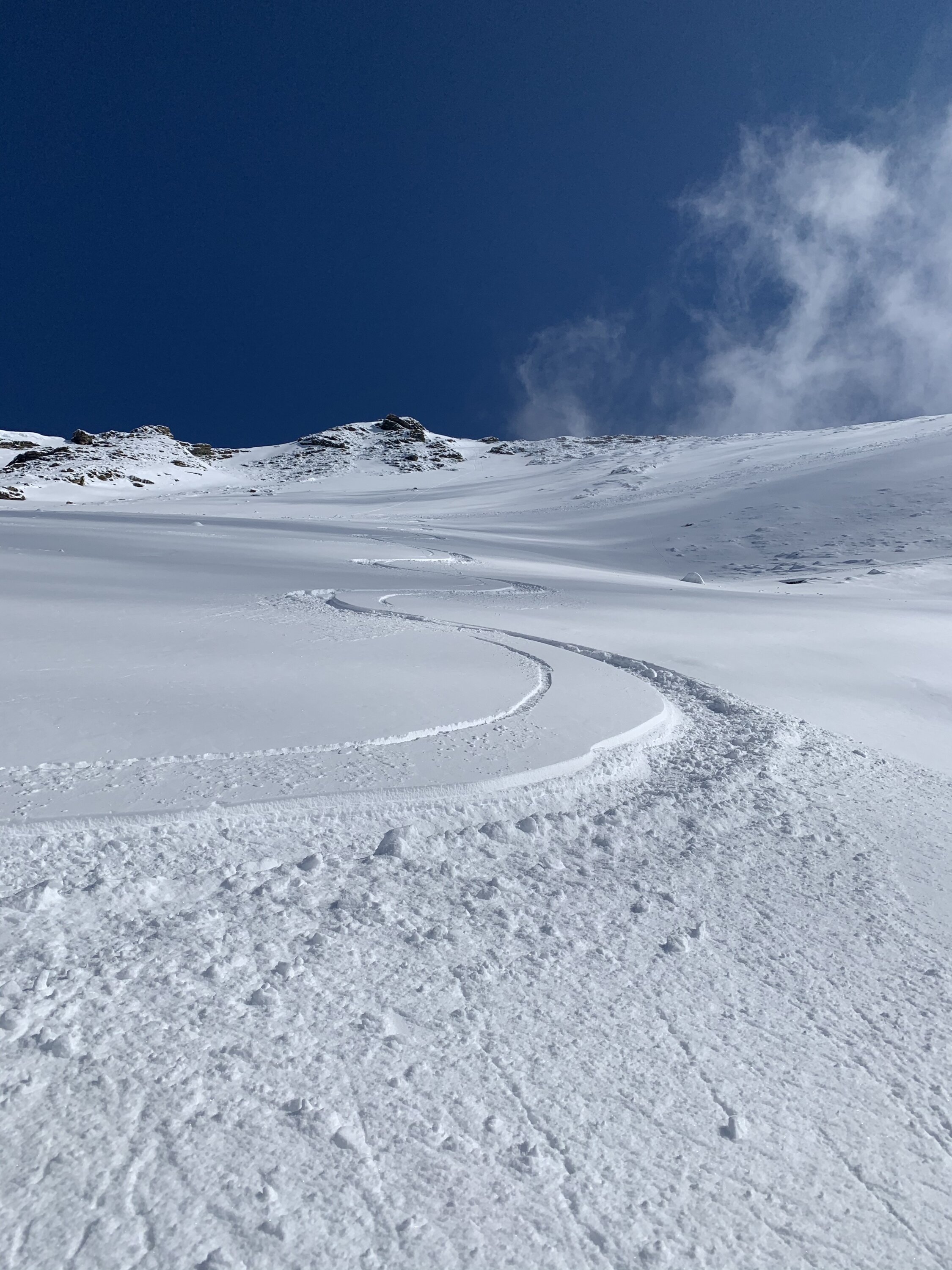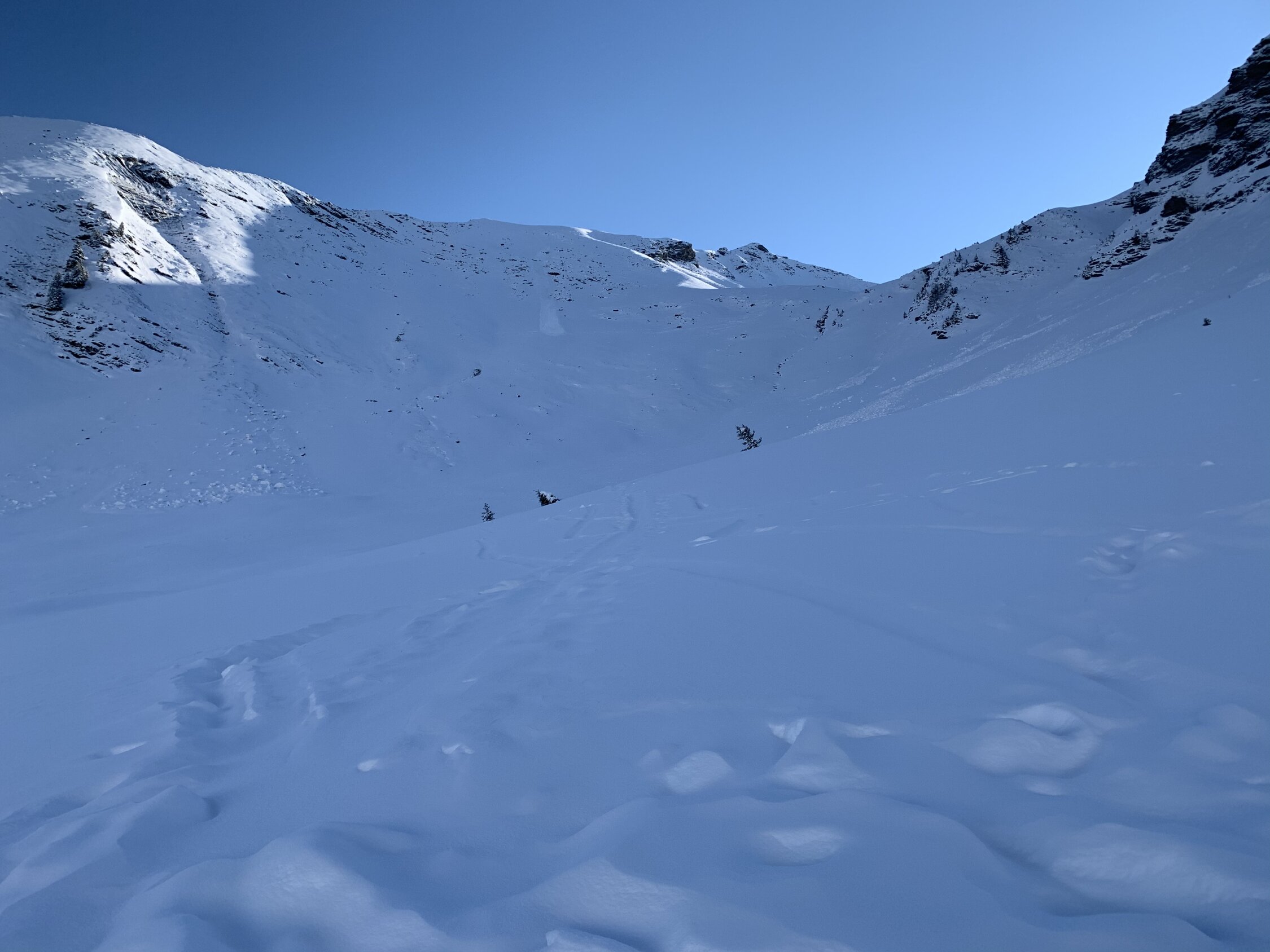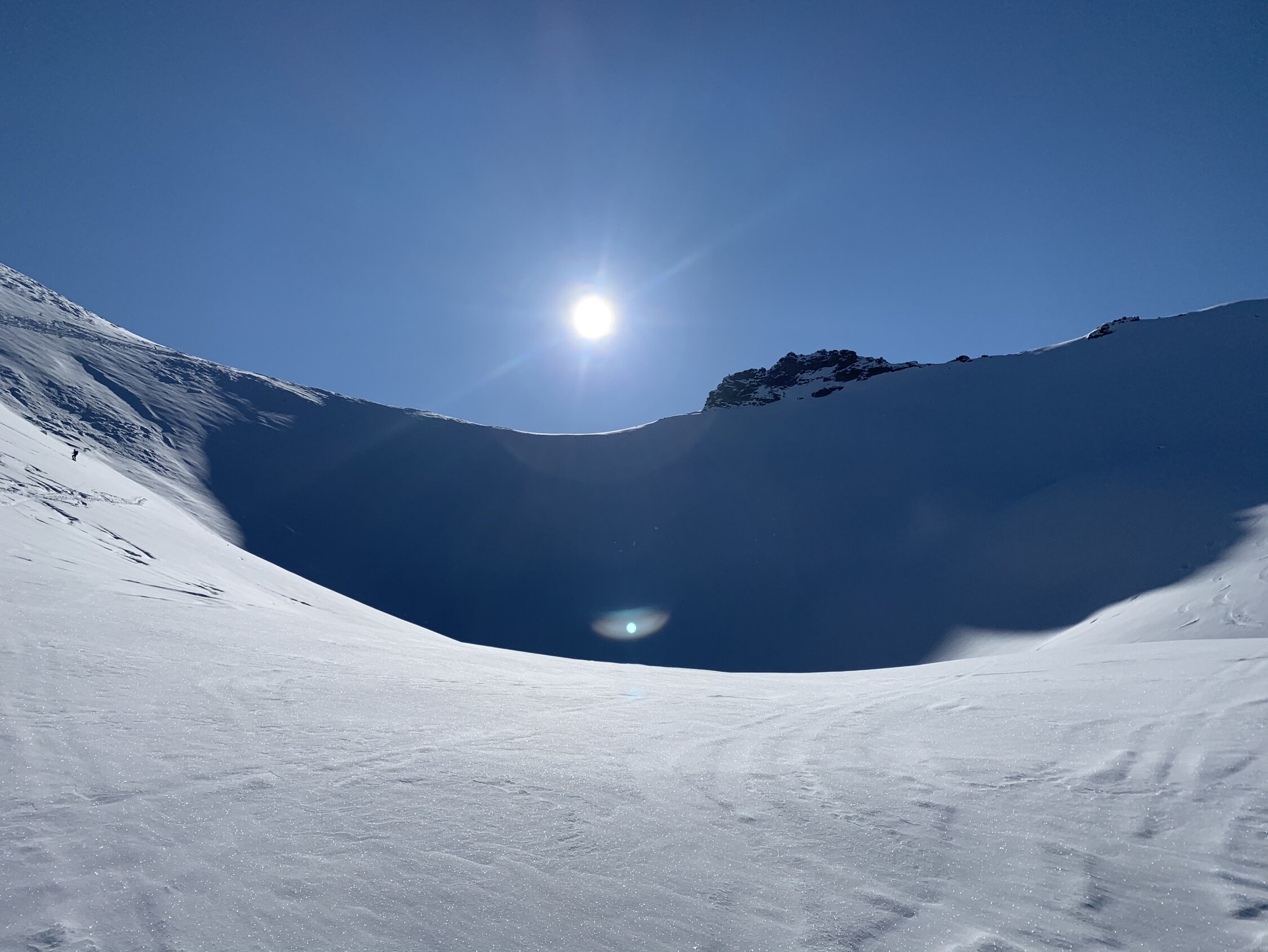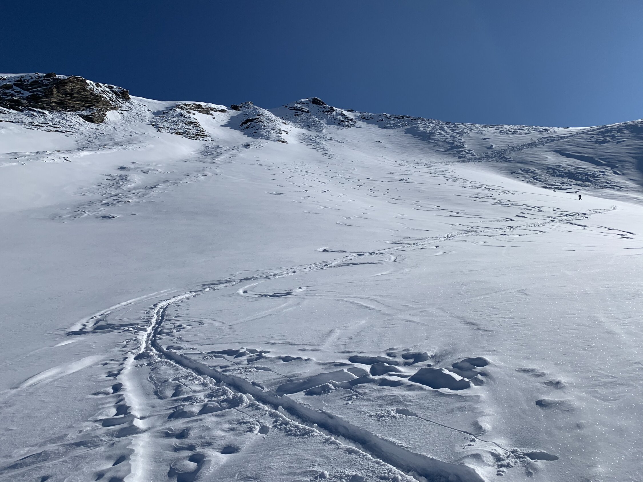 Am Morgen beim Start -6 Grad. Ski konnten nach der Brücke angeschnallt werden. Danach durchgehend eine Schneedecke. Aufstieg problemlos auch in den Steilhängen. Grat Trittschnee bis auf den Gipfel. Abfahrt mit Pulver bis fast zur Brücke auf 1390. Im Steibode ca 5-10cm Pulver auf harter Unterlage.