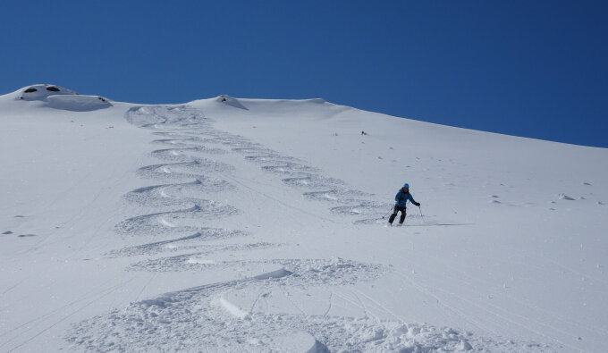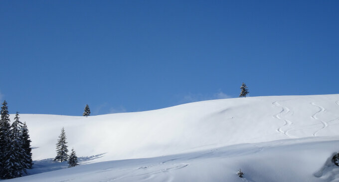 Die Abfahrt vom Madchopf zum Cholschlag war phänomenal. Pulverschnee, Pulverschnee und nochmals Pulverschnee vom Feinsten. Das hat heute richtig Freude gemacht!