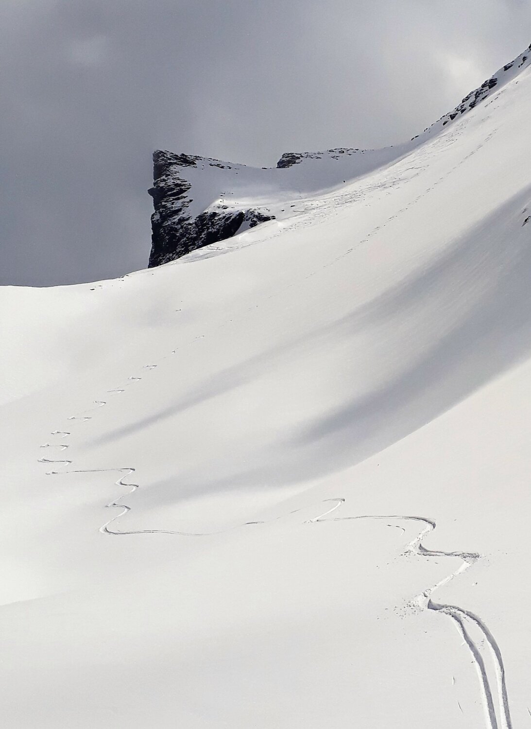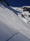 Erstaunlich: Immmer noch "Pulver gut". Natürlich schon etwas verfahren - man findet aber immer noch ein unberührtes Plätzli.