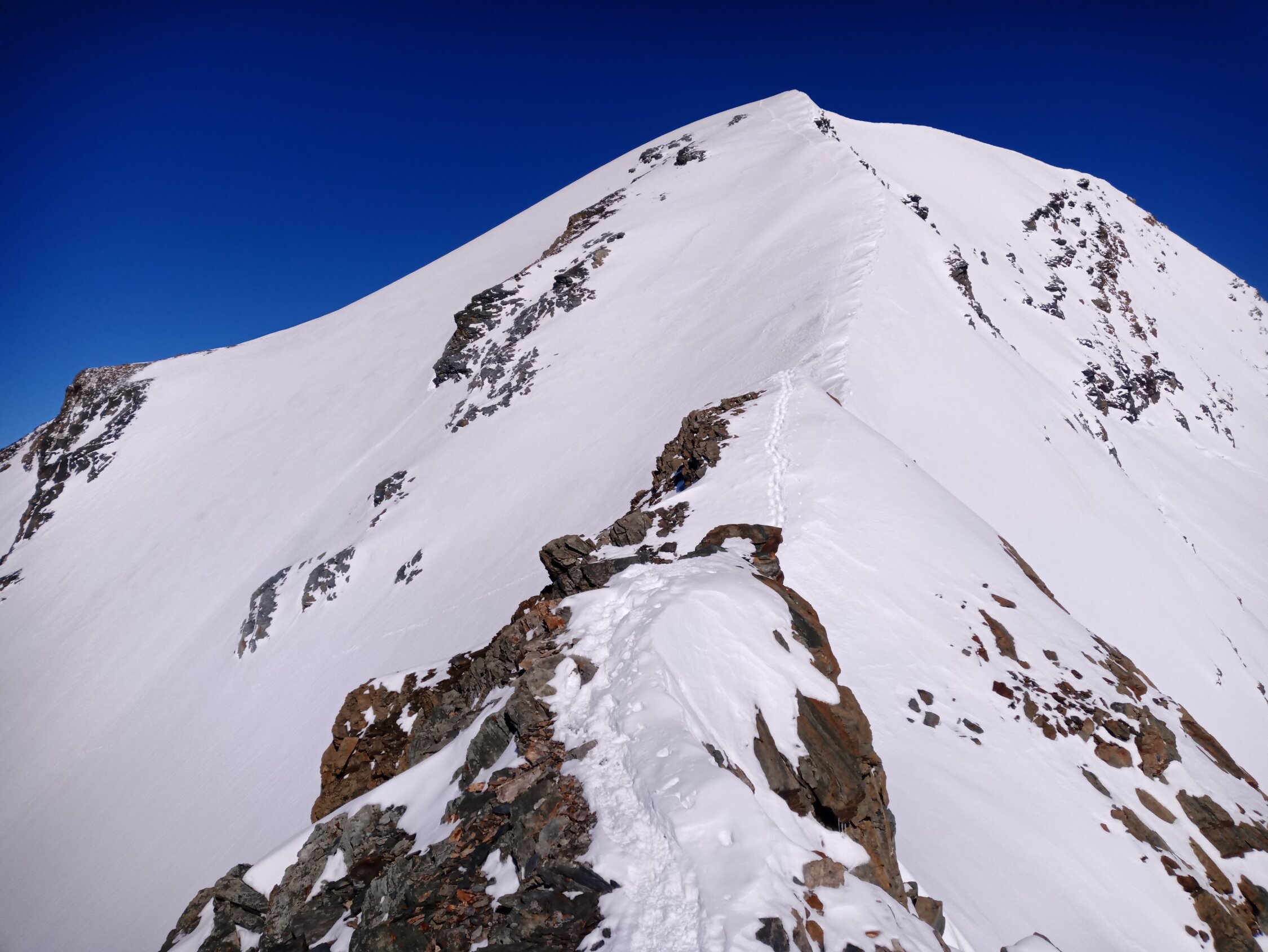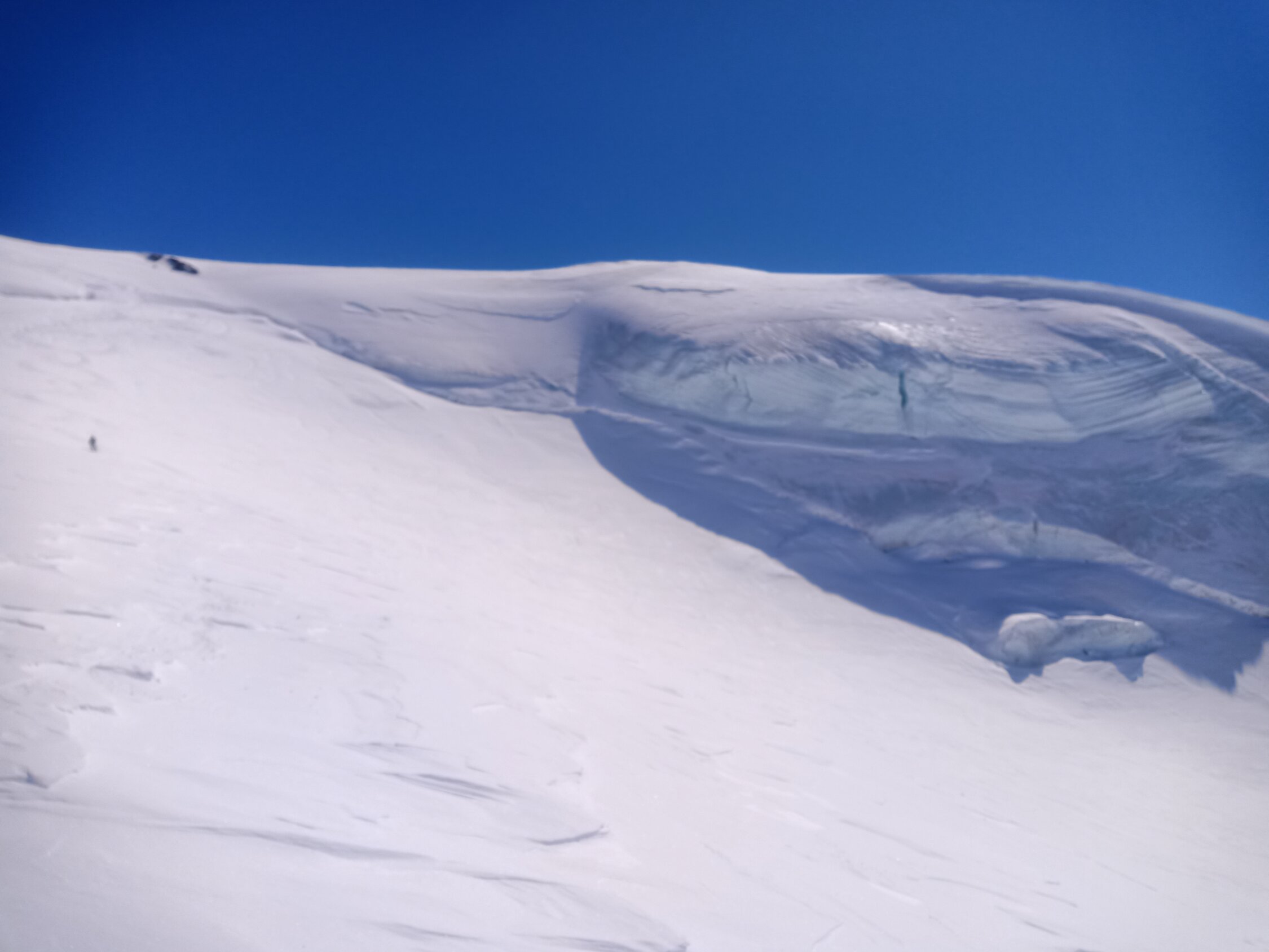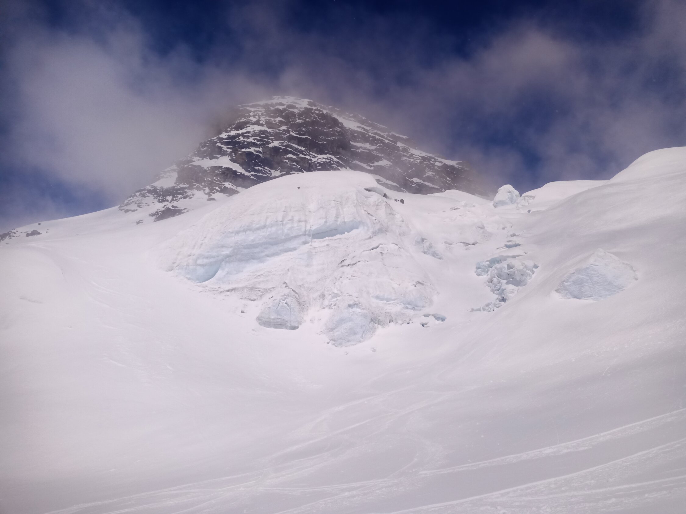 Gute Verhältnisse im Aufstieg, Anengletscher sehr gut eingeschneit.