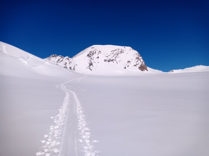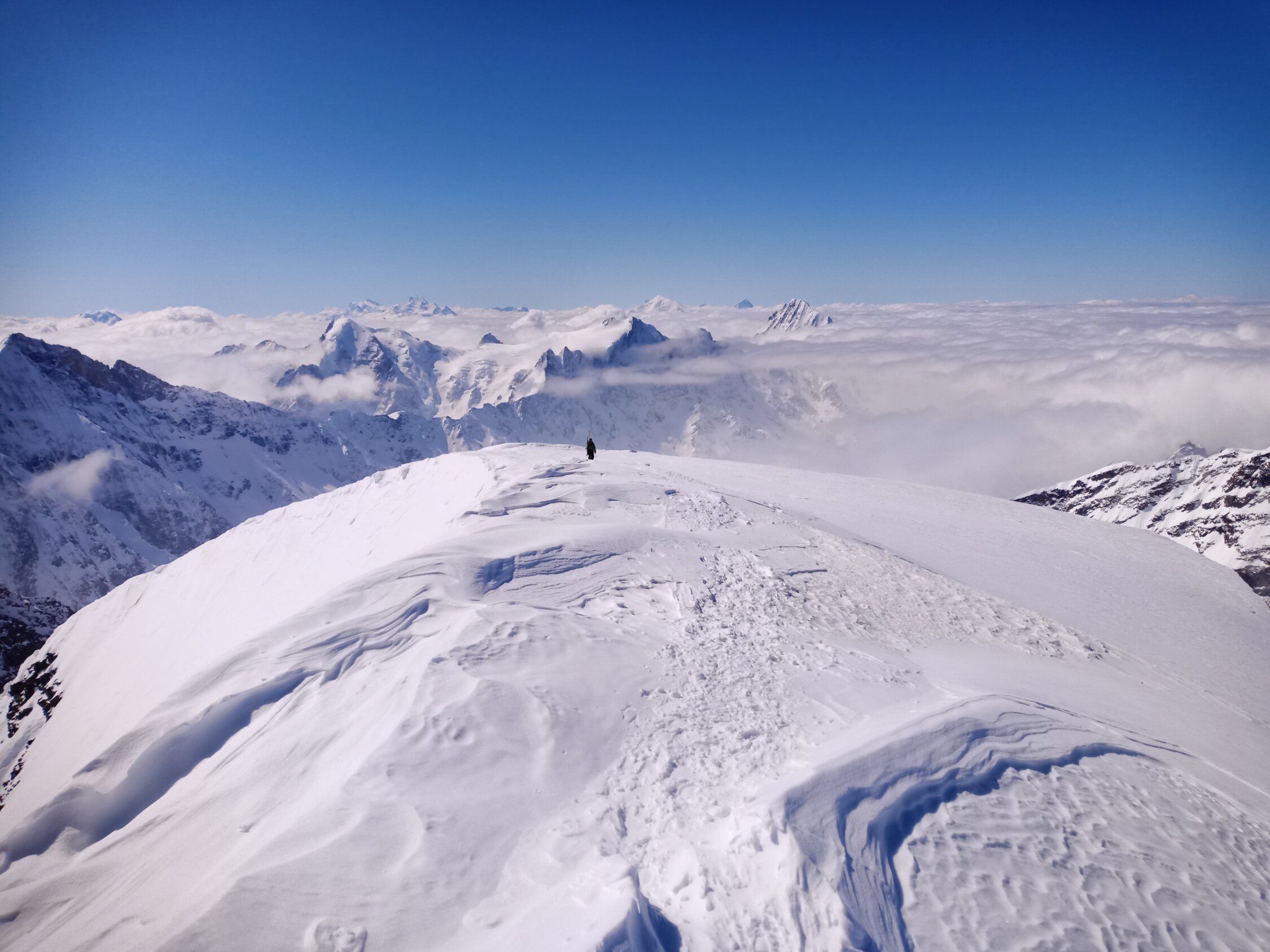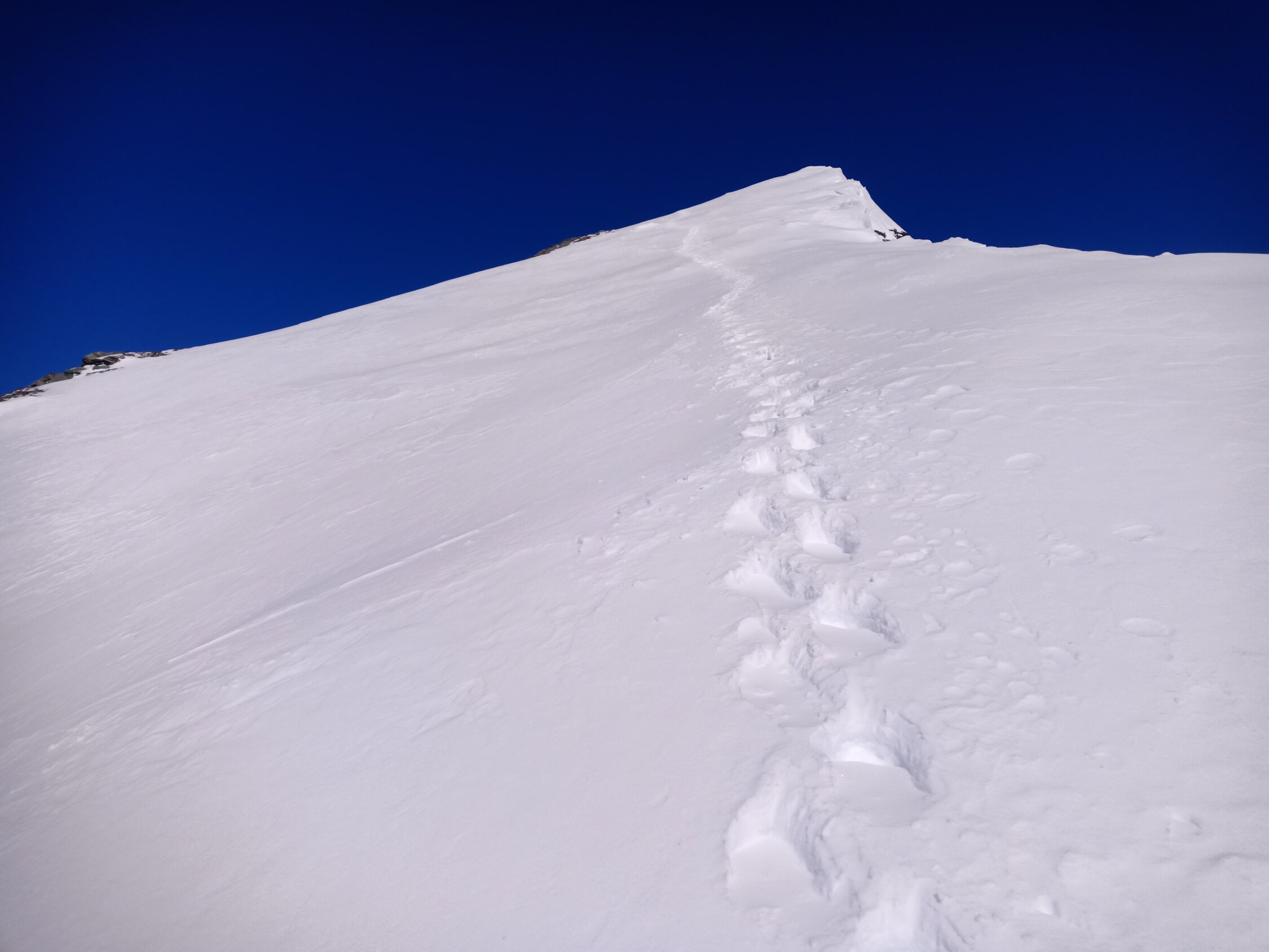 Gute Verhältnisse im Aufstieg, Anengletscher sehr gut eingeschneit.