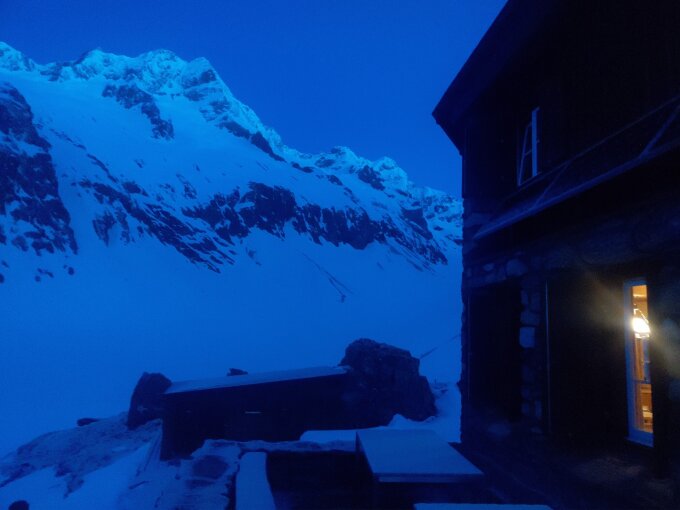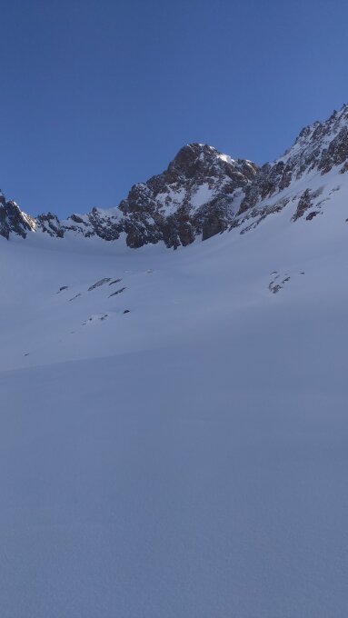 6 Uhr von der Voralphütte gestartet. An geeigneter Stelle mit genug Schnee auf die "Zenden" aufgestiegen, dazu die Skier aufgebunden und mit Steigeisen durch eine Rinne. Im Schatten und kühl bis zum Colouir Einstieg auf 2950 aufgestiegen. Skier auf den Rucksack und die Steigeisen montiert. In gutem Trittschnee unproblematisch durchs Colouir. Im unteren Teil des Grates brüchiger Fels. Weiter in luftiger Kletterei bis zum Schneegrat. Alternativ kann zur Zeit direkt das Schneecolouir bis zum Schneegrat aufgestiegen werden.