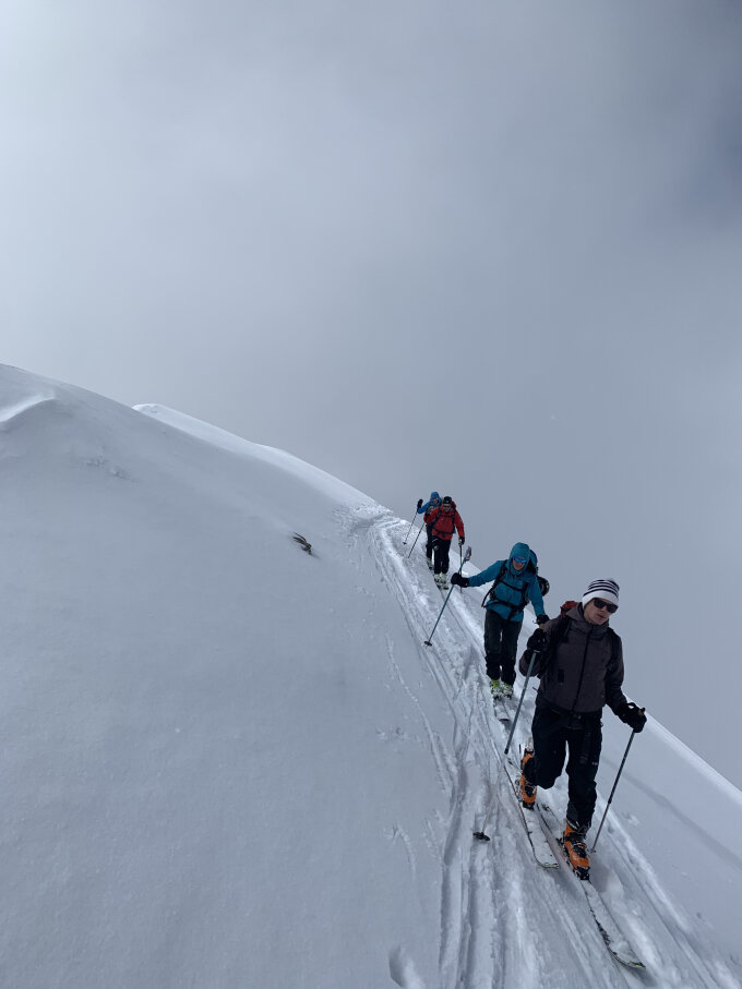 Spittelmatte bis Zackengrat schöne Spur auf Neuschnee gelegt, ohne Harscheisen tip top machbar. Zackengrataufstieg hat schönen Pulver.