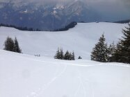 Windstill , 0 Grad beim Start auf knapp 1300 M.ü.M. Gute Spur. Schnee schattig pulvrig. Aufgehelltes Wetter. Weg und Abkürzungen wieder eingeschneit. Besser als vor 2 Wochen....Leichter Schneefall. Wetter wurde schlechter- Nebel. Abfahrt gewartet bis Sonne kam und los in den steileren Gipfelhang. Super Pulver leicht feucht. Platz für neue Spuren! Unterhalb Forsthaus Nasser Schnee war gut. Strasse wenn gefroren-ruppig...2 kurze Tragstellen mit maximal 50 Meter. Bis ca 1300 mit Ski. Retour 300 Meter zu Fuss bis Geissboden.