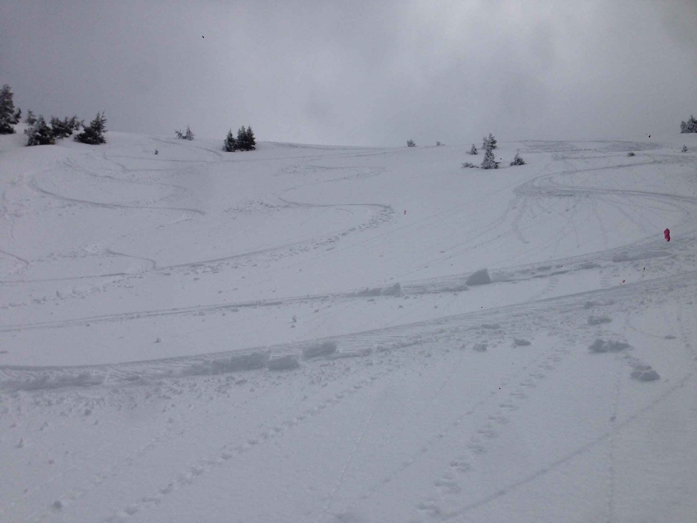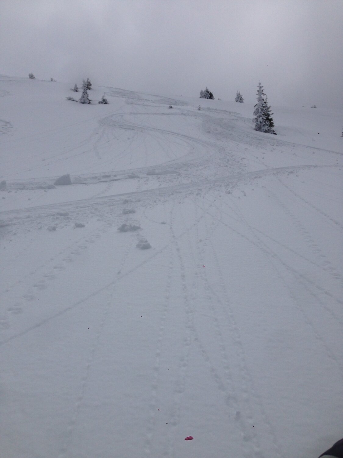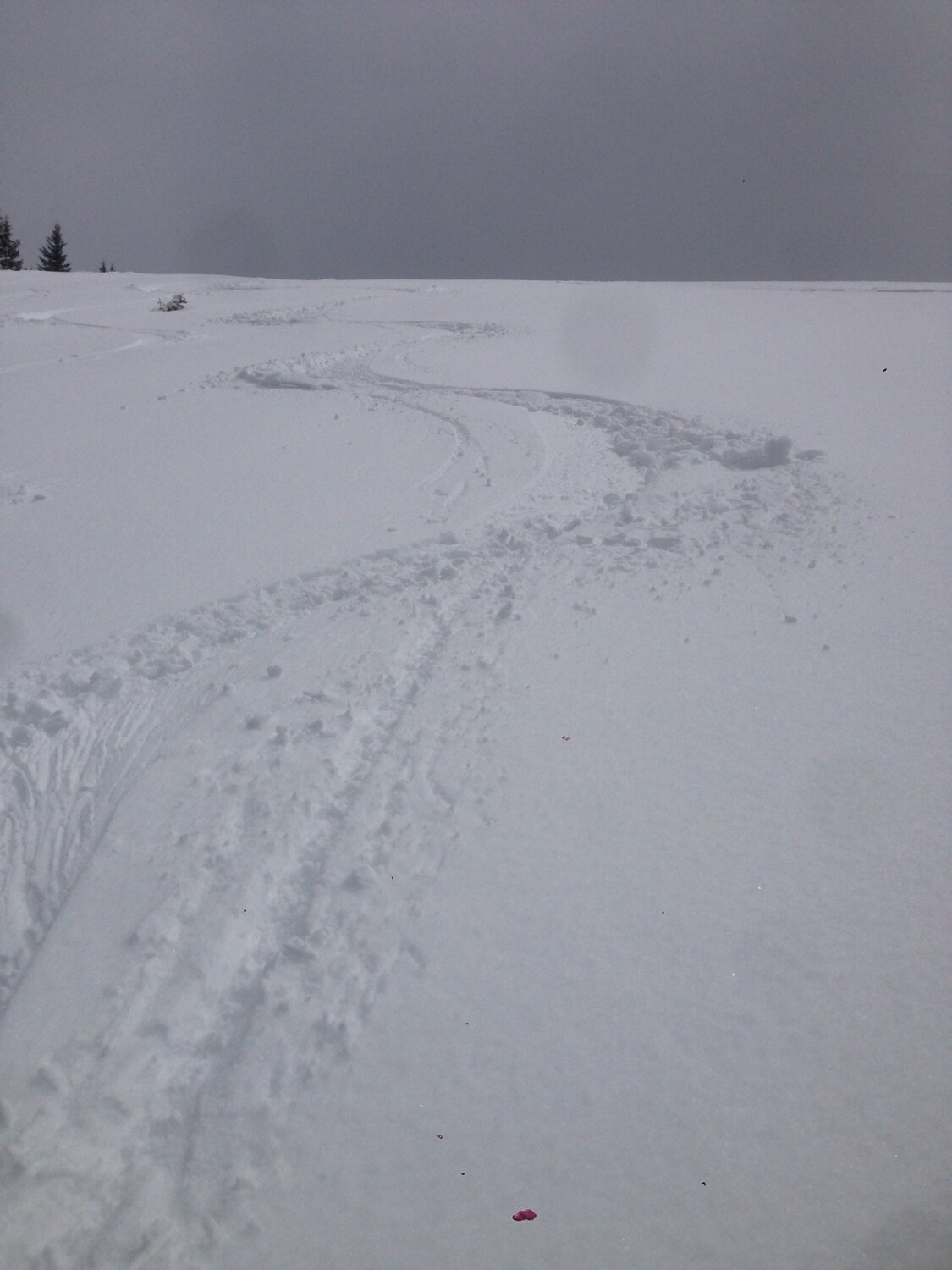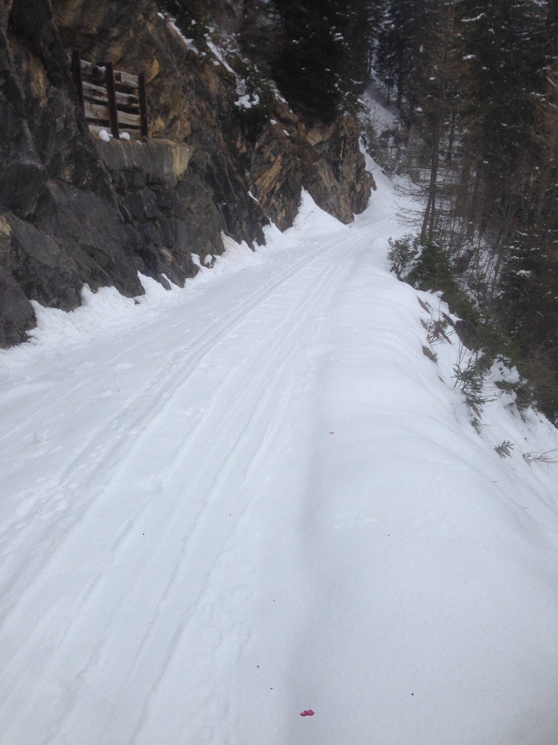 Tragstrecken ab Geissboden werden mehr. Viele Stellen waren nur noch mit relativ neuem Schnee gedeckt und sind schnell wieder aper. Geissboden nicht befahrbar weil noch ca ein halben Meter Schnee liegt auf ganzem Platz.Ab Forsthaus noch viel Schnee
