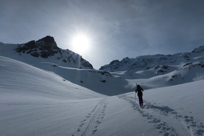 Abfahrt oben bis Chüealp Furgga harschig oder gerade firnig genug. Danach top Powder runter bis zum Chüealpbach. Sind ganz links gefahren, soweit in den Nordhängen wie möglich.