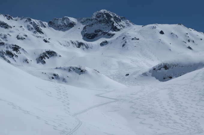Aufstieg bis zum Pass top. Danach schöne Spur bis zum Sattel unter dem Passhöreli. Hier viele "Kescher" unterwegs, die den Gipfel mitnehmen.