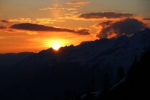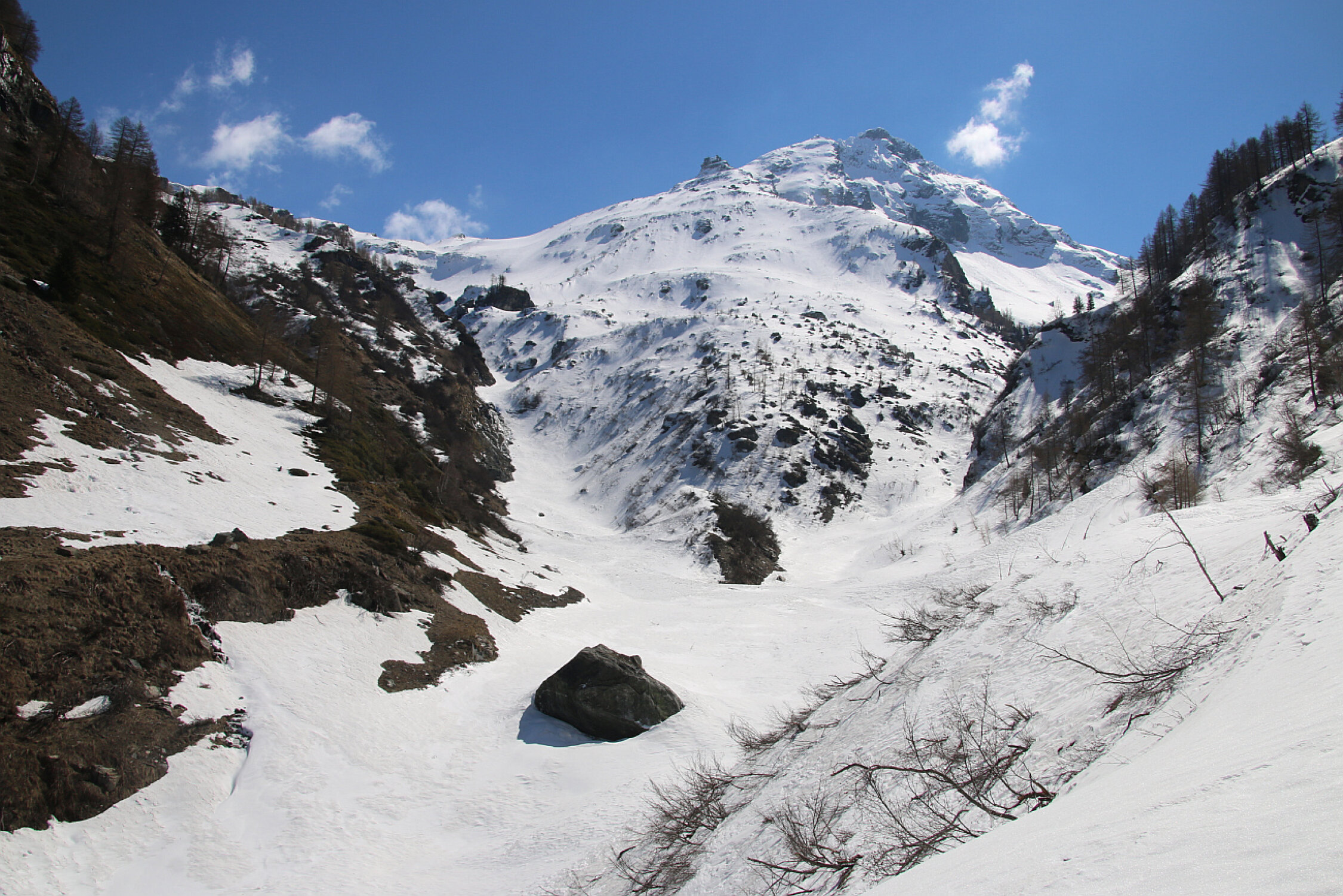 Nach Ankunft in Berisal mit dem Postauto liefen wir beim kleinen Kirchlein auf 1525m im Gantertal sogleich taleinwärts wo wir schon bald die Schneeschuhe anzogen. Wenig ansteigend erreichten wir bald auf etwa 1750m die steile Flanke die zu den Bortelhütten. Der Sommerweg darüber war meist aper so dass wir nun die Schneeschuhe auf den Rucksack banden. Nun machten wir flott Höhenmeter und als das Gelände wieder flacher wurde liefen wir ohne Schneeschuhe dank bestem Trittschnee zum Nachtlager. Schon am frühen Nachmittag waren wir in der Hütte und genossen den langen Tag bei Sonnenschein hoch überm Rhonetal. Toll war auch, dass ausser uns niemand anders dort war!