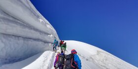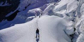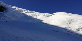 Very good conditions on easy route. Surprised this is rated PD and not F. There was one danger zone where you had to walk under some seracs for 20 minutes, the problem was that it was very busy and we had to wait there longer. Cold wind at the top. We got on the glacier at 8:30 and reached the top 11:15. We were back down by 13:00. Glacier travel skills and equipment necesssary.