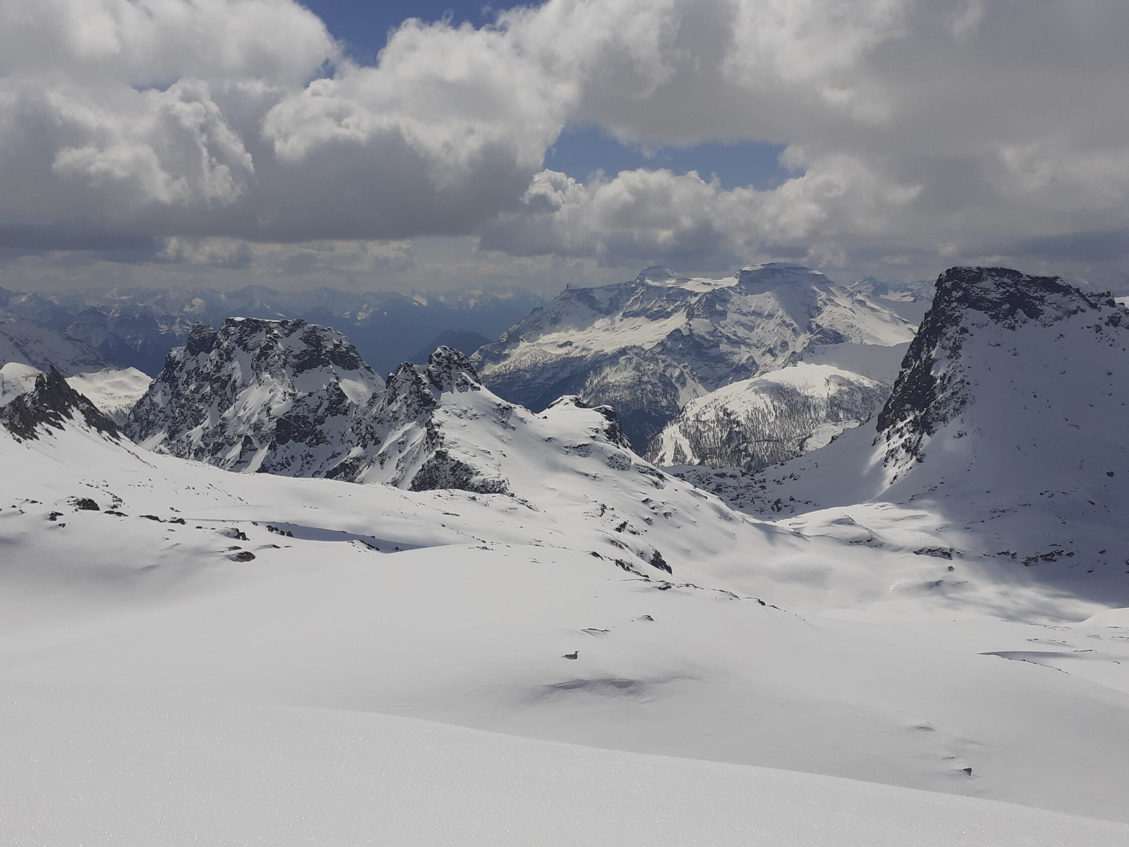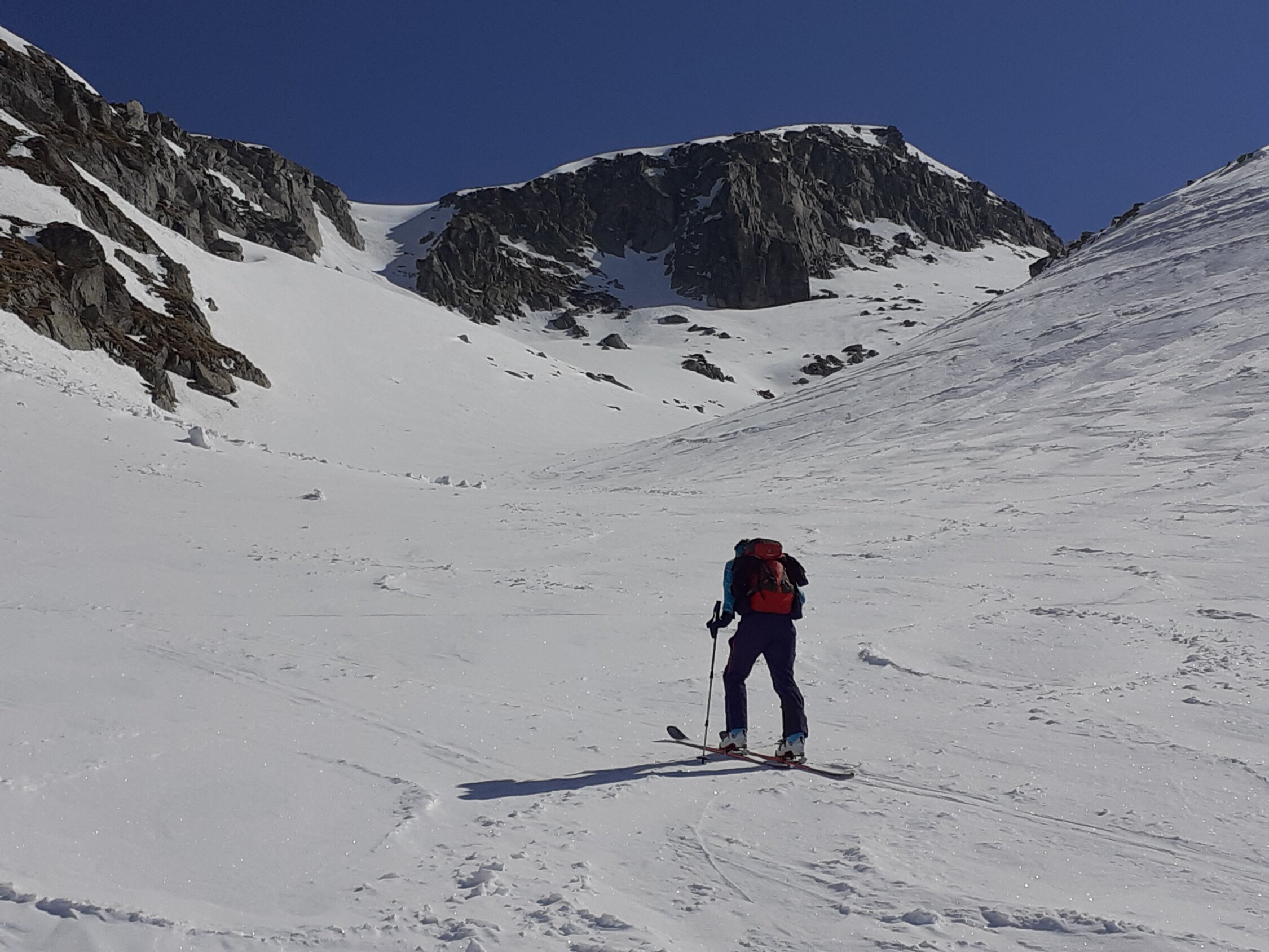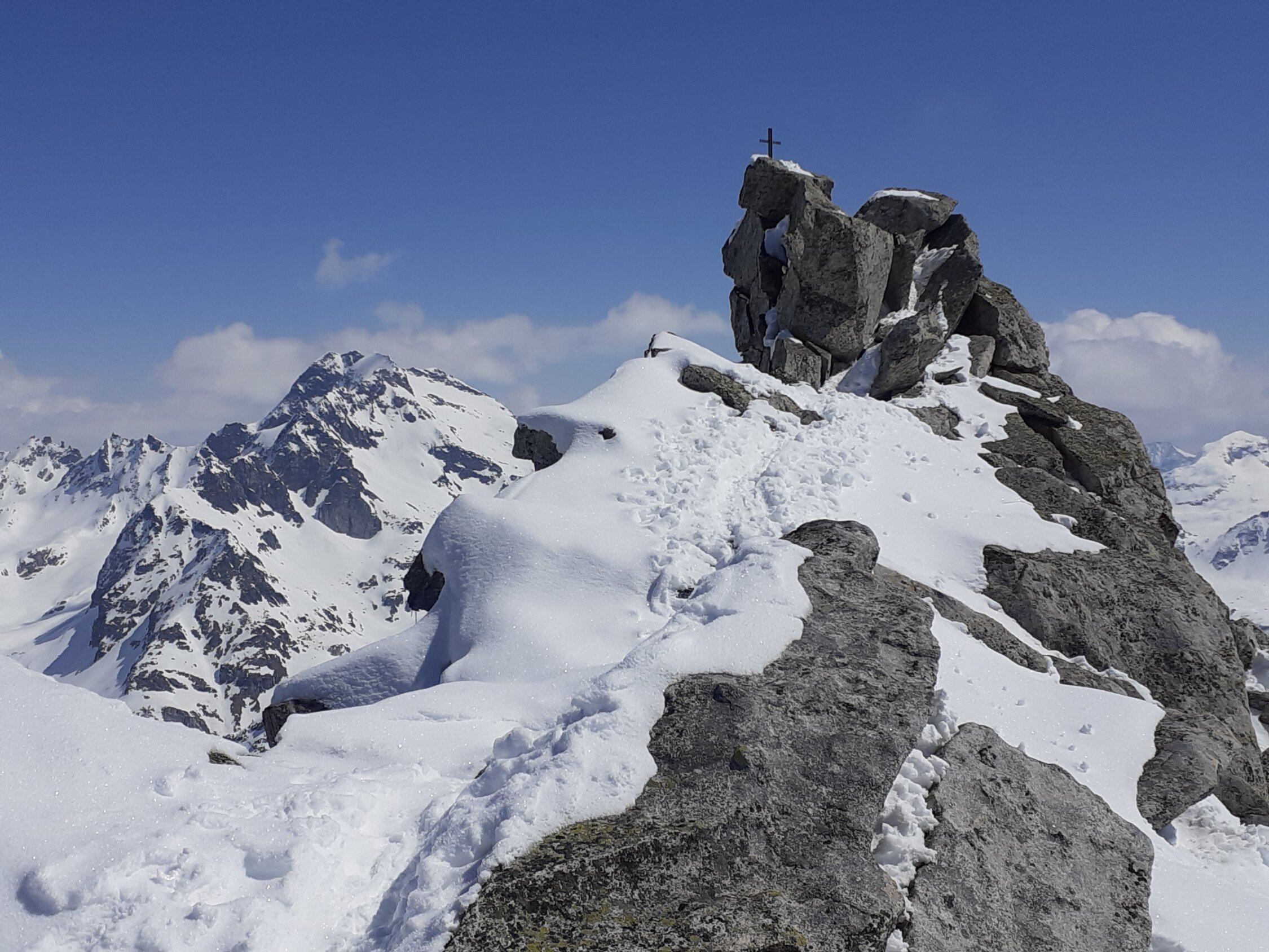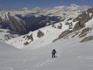 Da die Südhänge in Richtung Rappenhorn ab Fäld sehr aper aussahen, haben wir uns für das Grosse Schinhorn entschieden. Guter und genug Schnee auf der ganzen Route, oben gibt es noch etwas Pulver. Schönes Gipfelpanorama in Richtung Italien.