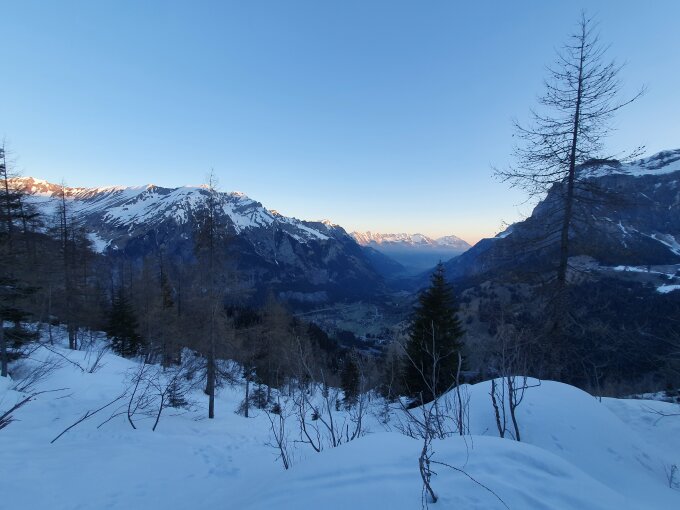 Ab der Hütte runter dann Pflichtprogramm: durch den Wald und über Lawinenkegel teils hart, teils Sulz runter so weit es mit den Ski halt ging...