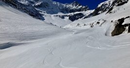 Traumhaft gute Verhältnisse. 7.00 Uhr bei Handegg gestartet. Der erste Steilhang entlang des Ärlenbachs war hart, aberr mit Harscheisen gut zu gehen. Praktisch windstill. Im Bereich Ärlen bis unter das Horen griffiger Firn. Die Rinne zu P2259 hatte eine sehr gute Spur und war einfach zu gehen. Traverse zum Golegggletscher hatte eine gute Spur. Im Gipfelcoulvar hat es sehr guten Trittschnee. Pickel nicht nötig, aber Steigeisen sind hilfreich. Bergschrund gut eingeschneit und nicht sichtbar. Auf dem Gipfel fast windstill und top Fernsicht. Ein ausgiebiger Rast unten am Goulvar war genial. Abfahrt 11.00 Uhr erwies sich als ideal. Besser nichts später. Ab Golegggletscher bis fast ganz unten schöner Sulz vom feinsten. Rinne unterhalb P2259 war schon leicht aufgeweicht, aber gut fahrbar. Im letzten Steilhang war der Schnee zum Teil leicht faul. Kein Bremsschnee. Die Tour hat sich total gelohnt.