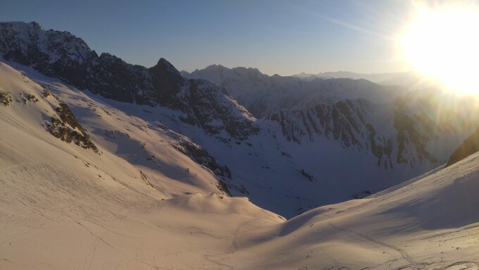 Abfahrt Gipfelhang ganz ok, dann rüber traversiert und in Richtung Piz Uffiern für eine schöne aufgesulzte Fahrt durch das "Davos la Buora" aufgestiegen. Teilweise gut aufgesulzt, teilweise hatte es noch leichten Deckel. Stöckeln über Alp Sura ging gut. Zur Überquerung des Baches "Rein da plattas" müssen die Skier abgezogen werden. Dann noch Abfahrt bis 1400müM möglich (20 Minuten oberhalb des Sägewerks). Aber der Schnee schmilzt dahin und es wird bald längere Tragestrecken geben. Zurück beim Parkplatz 13:00.