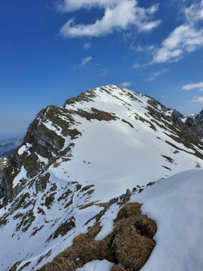 start neuhus 1500m.,mit harsteisen bis flanke unter culi,steigeisen für culi gut-hart bis eisig.ausstieg ohne wächte.weil zu früh abfahrt ostflanke direkt in schönem sulz,unten kurz über apere stelle absteigen und bis kaisereggalp 1800m.wiederaufstieg teuschlimatgrat 2100m und über oder neben dem langen grat retour kaisereggpass und gipfel.abfahrt culi oben leider nicht aufgefirnt(13.30)hart griffig gut fahrbar,unten leider harte louizüge ,aber ganze flanke unten raus bis riggisalp(bis ca 1400m)super sulz auf letzdem schneestreifen.wiederaufstieg salzmatt zu fuss.abfahrt pw sulz.