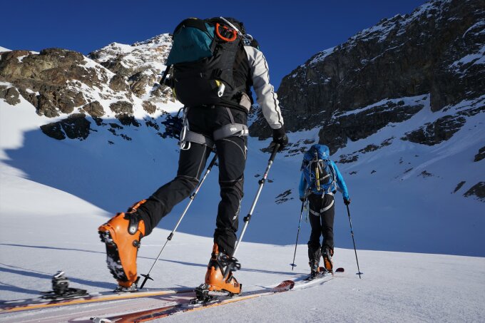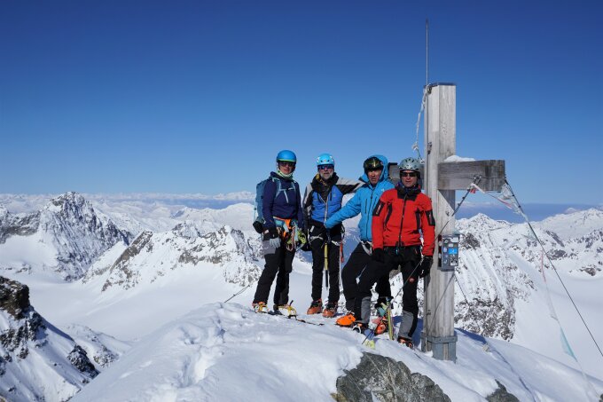 Von der Tuoi Hütte über das Südcouloir zur Buinlücke und weiter auf den Piz Buin. Abfahrt über den Ochsentaler Gletscher und retour zur Hütte über den Vermuntpass.