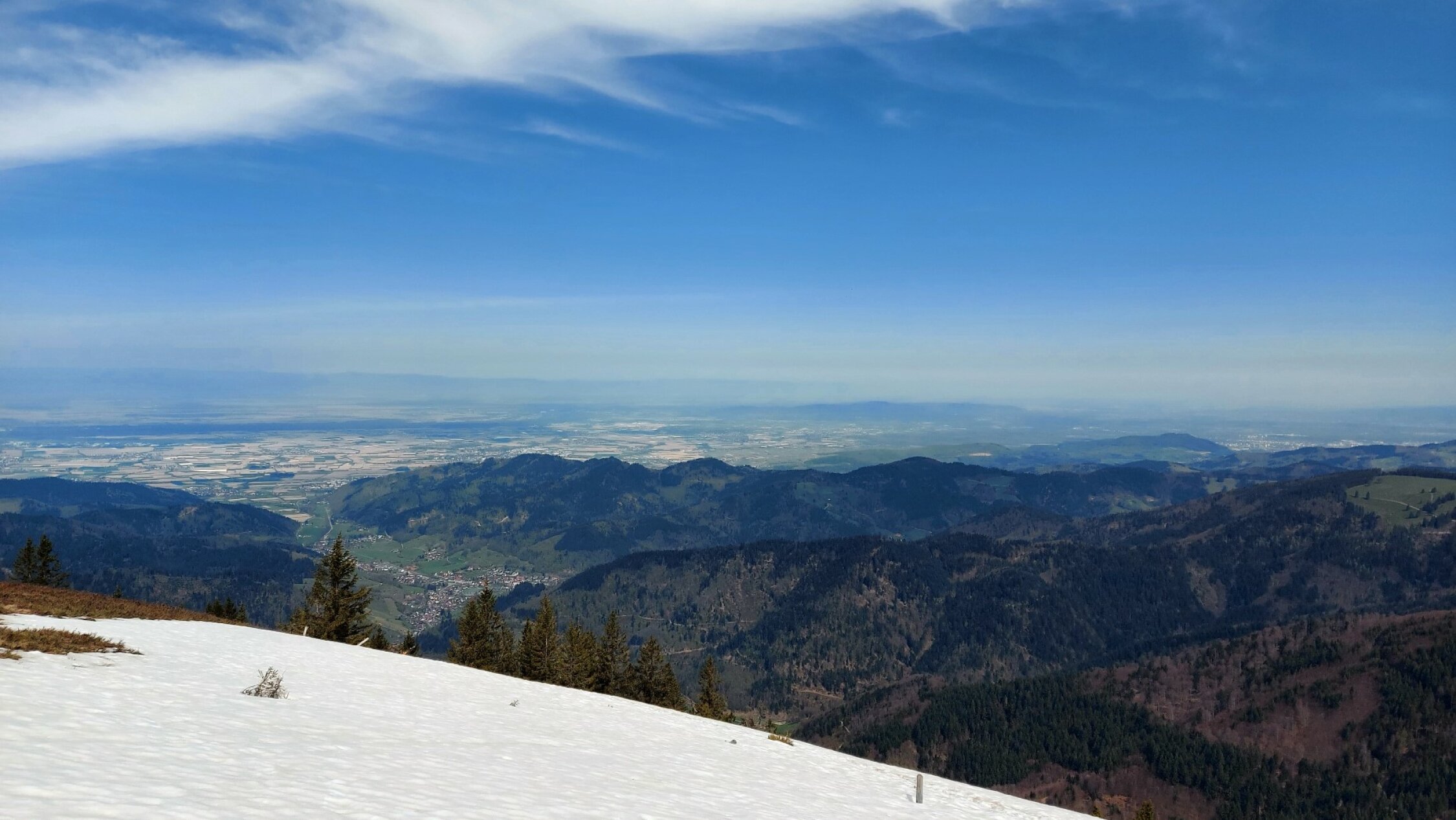 Am Morgen noch etwas bewölkt, später klar. Einige Grade plus beim Start und bei der Rückkehr unten im Tal 18 Grad. Am Gipfel leichter Nordostwind.