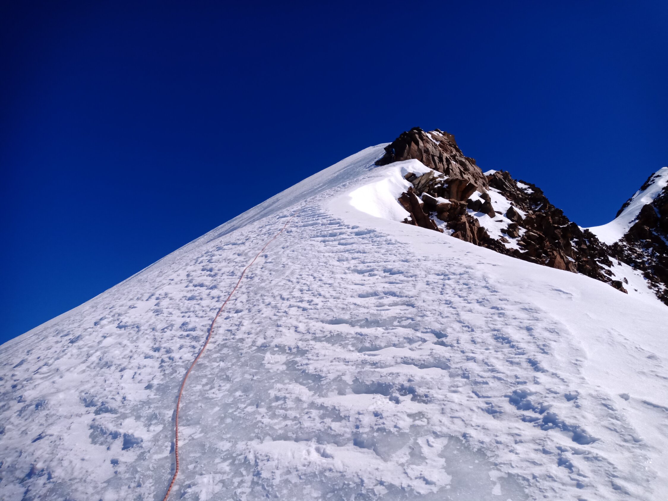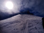 Gute Verhältnisse, Gipfelgrat z.T. blank, aber sonst gut. Allgemein wenig Schnee im Gebiet.