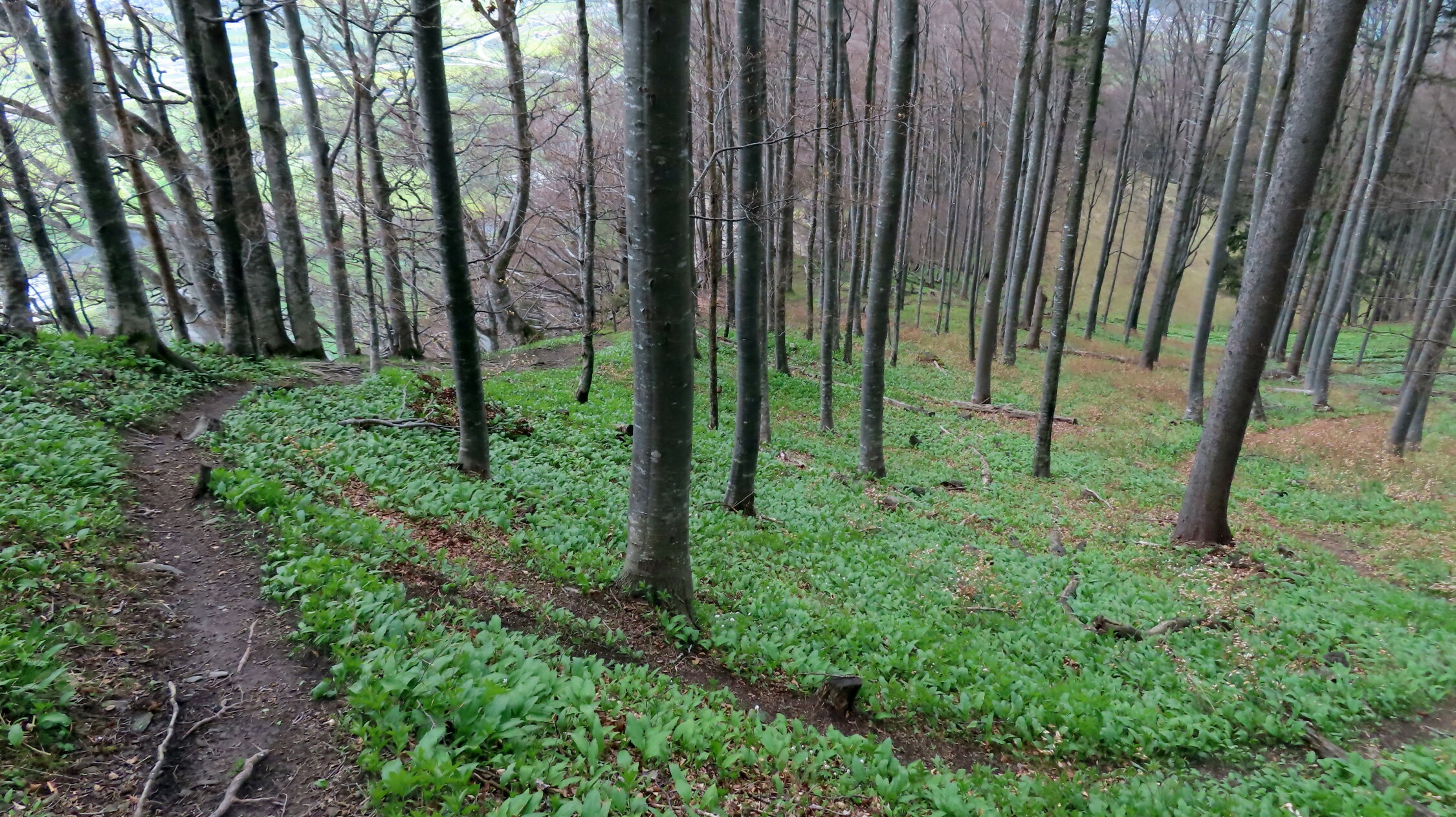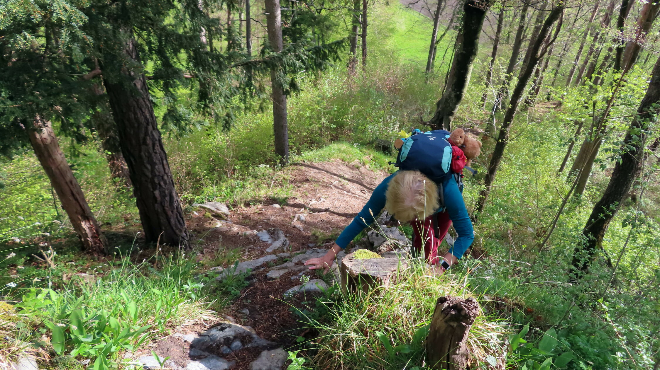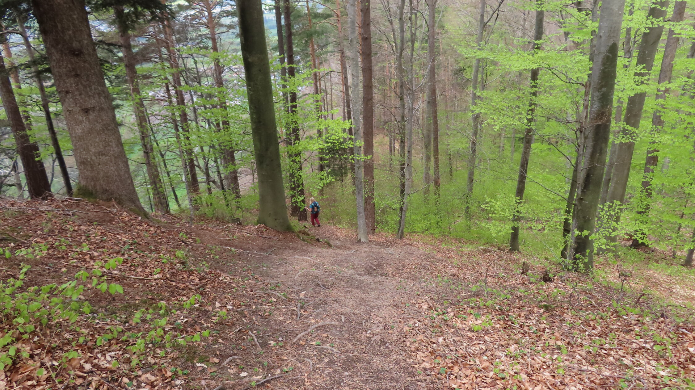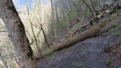 An der Abzweigung vom Leiterliweg ist letzten Winter ein Baum über den Weg gestürzt. Daneben hat sich aber ein gut gestufter Pfad herausgebildet, der in die Traverse zum Bunker und Leiterli führt.