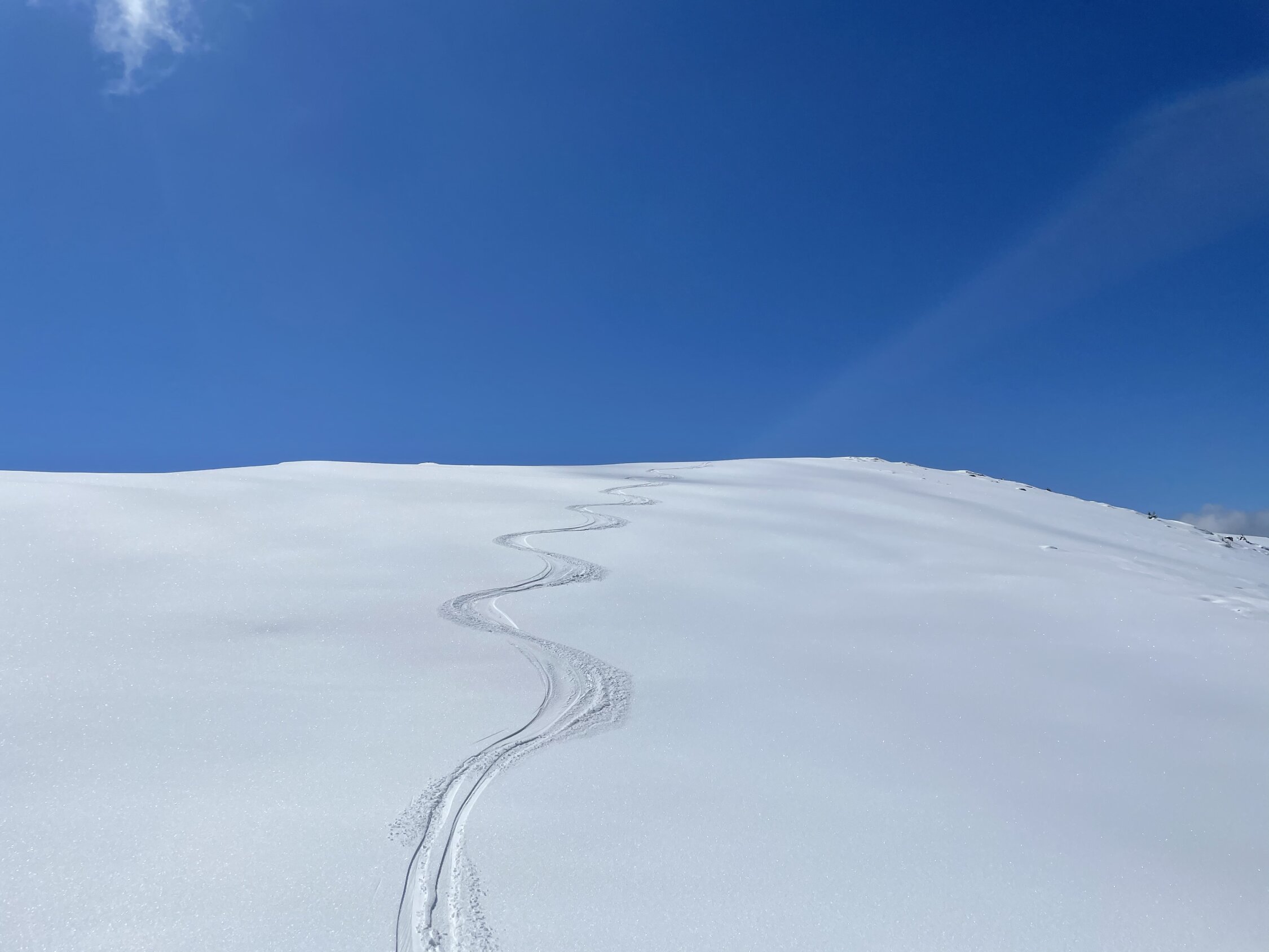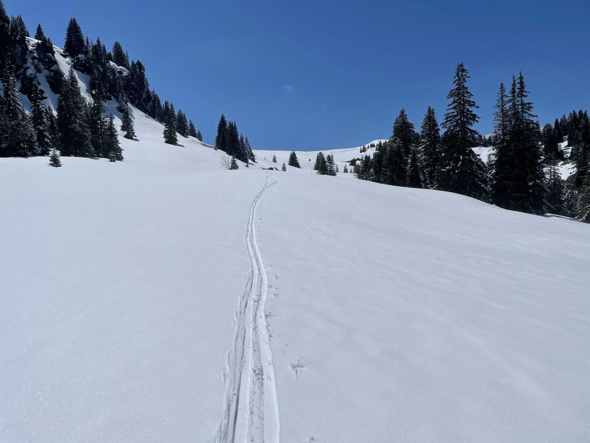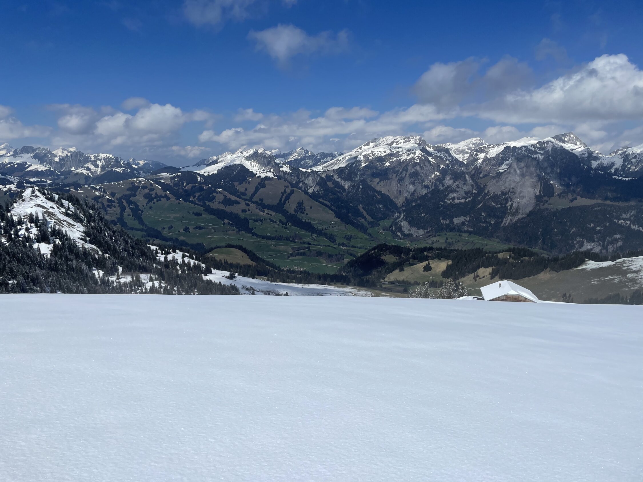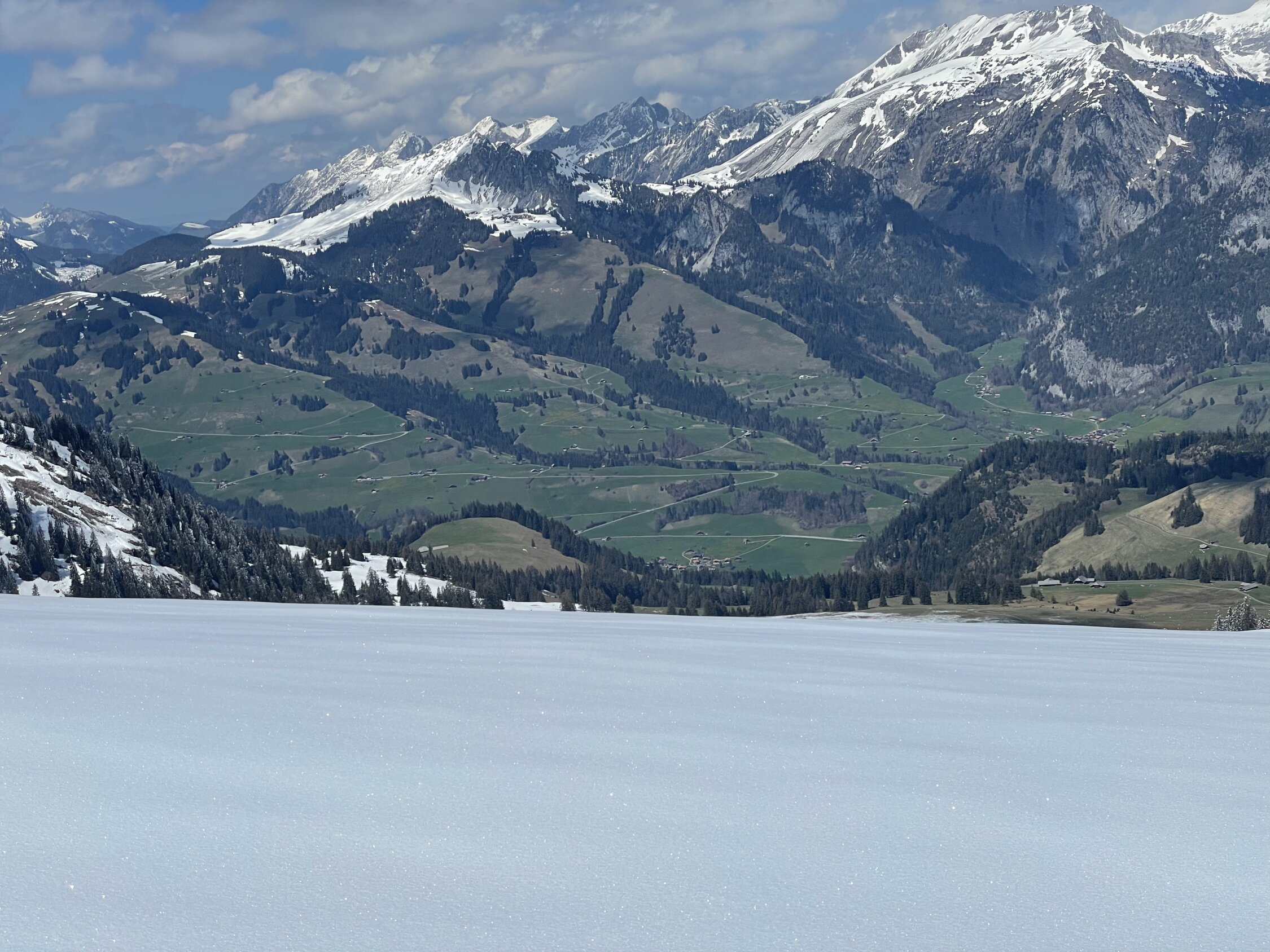 Wenn man an einem Montag wie diesem das Homeoffice mit einer Skitour vertauschen kann, ist das natürlich ein Privileg und verdient das Prädikat ausgezeichnet. Trotzdem kann ich das nicht geben. Aufstieg sehr schön, Topwetter und ein Klasse Frühlingstag. Ich wollte heute den Hang vom Blutte Hubel Richtung Boltigen fahren, mir neu und nordexponiert. Wann kann man das schon mal im Mai? Aufstieg über Normalweg, im Chelli dann kräftig Stollen. Abfahrt Richtung Nord ein Traum, Pülverli auf tragender Unterlage. Bei 1800 brach man dann durch, daher auf dieser Höhe Wiederaufstieg. Abfahrt Normalroute im Chelli noch gut, aber dann Beinbrechsumpf der Güteklasse A. So bis Obergestelen, danach zum Glück wieder besser, heisst fahrbar bis oberhalb Brätliplatz. Danach auf der Strasse zum Auto. Also: oben super, mittig miserabel, unten ok, gibt im Schnitt halt hellgrün. Passt ja auch zum Frühling:)