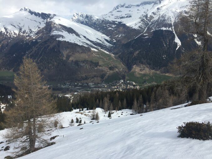 Aufstieg durch den Fugschtwald ohne Tragepassagen auf zusammenhängenden Schneebändern noch möglich. Für die Abfahrt nicht mehr geeignet. Hier empfiehlt sich die Variante über Nätsch zur Passstrasse. Ab der Strasse zwei mal kurz Ski tragen und dann über die Piste entlang dem Hüscherabach zum Parkplatz.