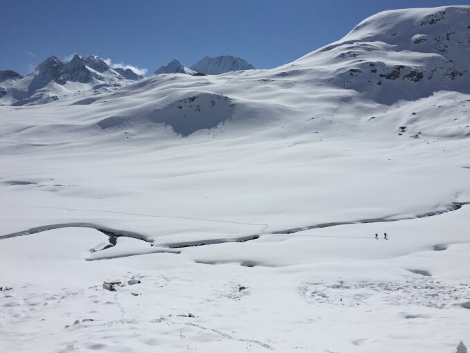 Im Gegensatz zum Guggernüll war das Tambo Nordcouloir heute gut besucht.