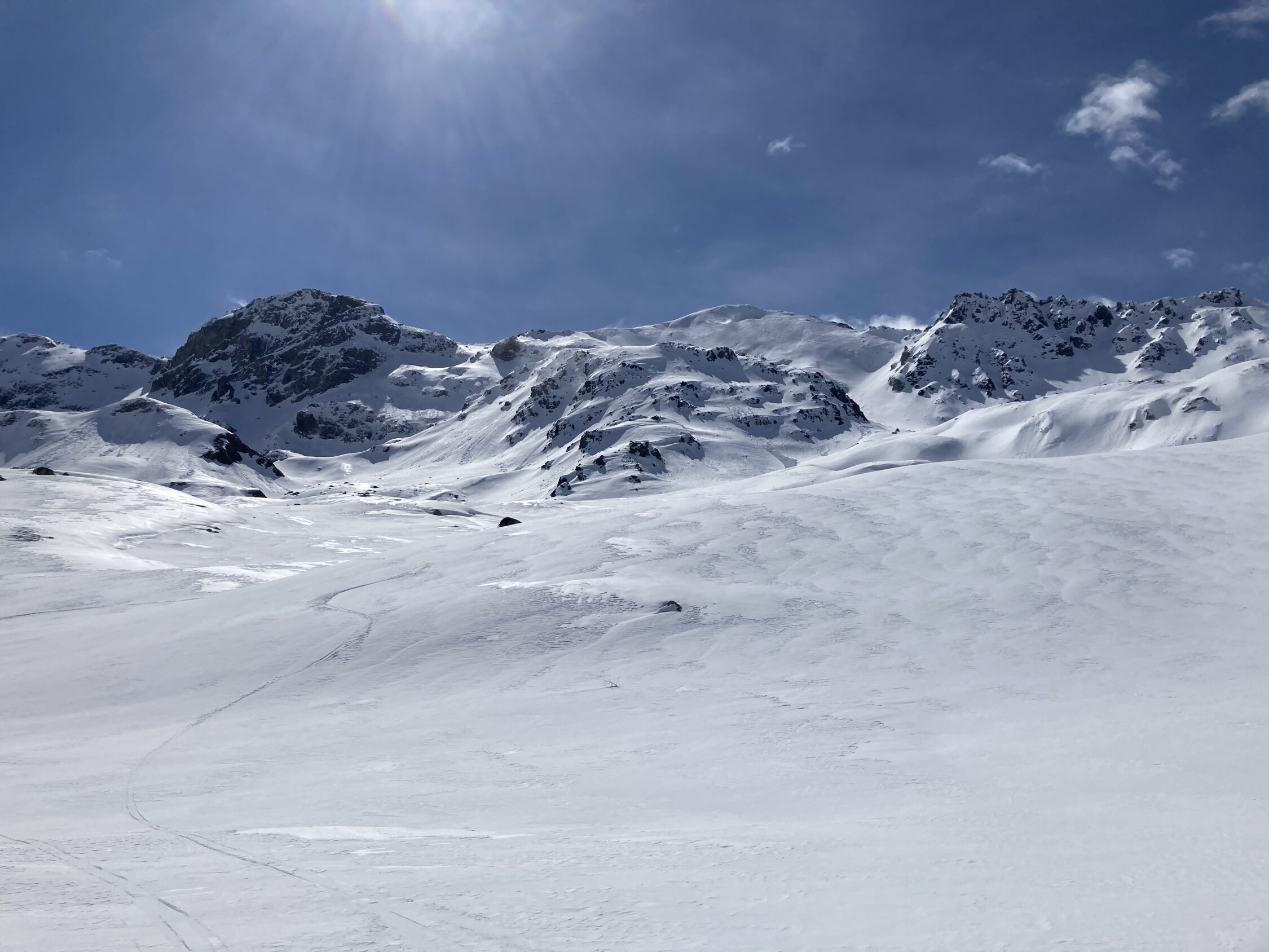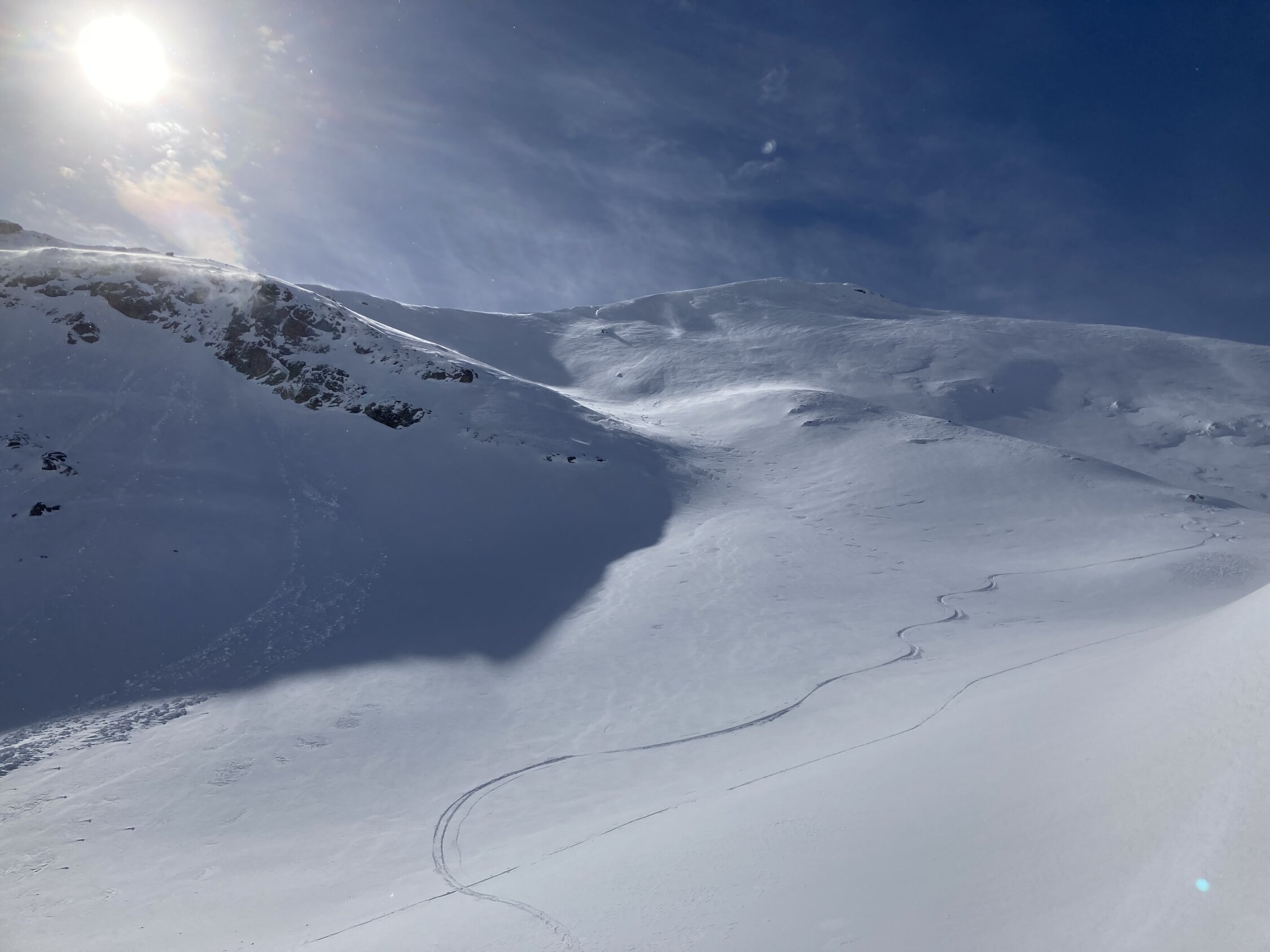 2300m Presspulver, Gipfelhang stark eingeblasen,