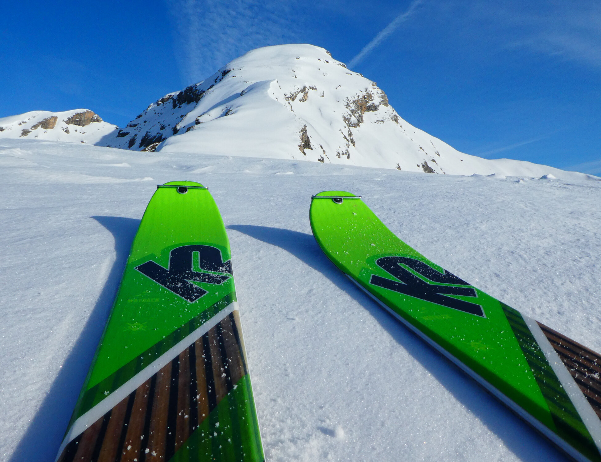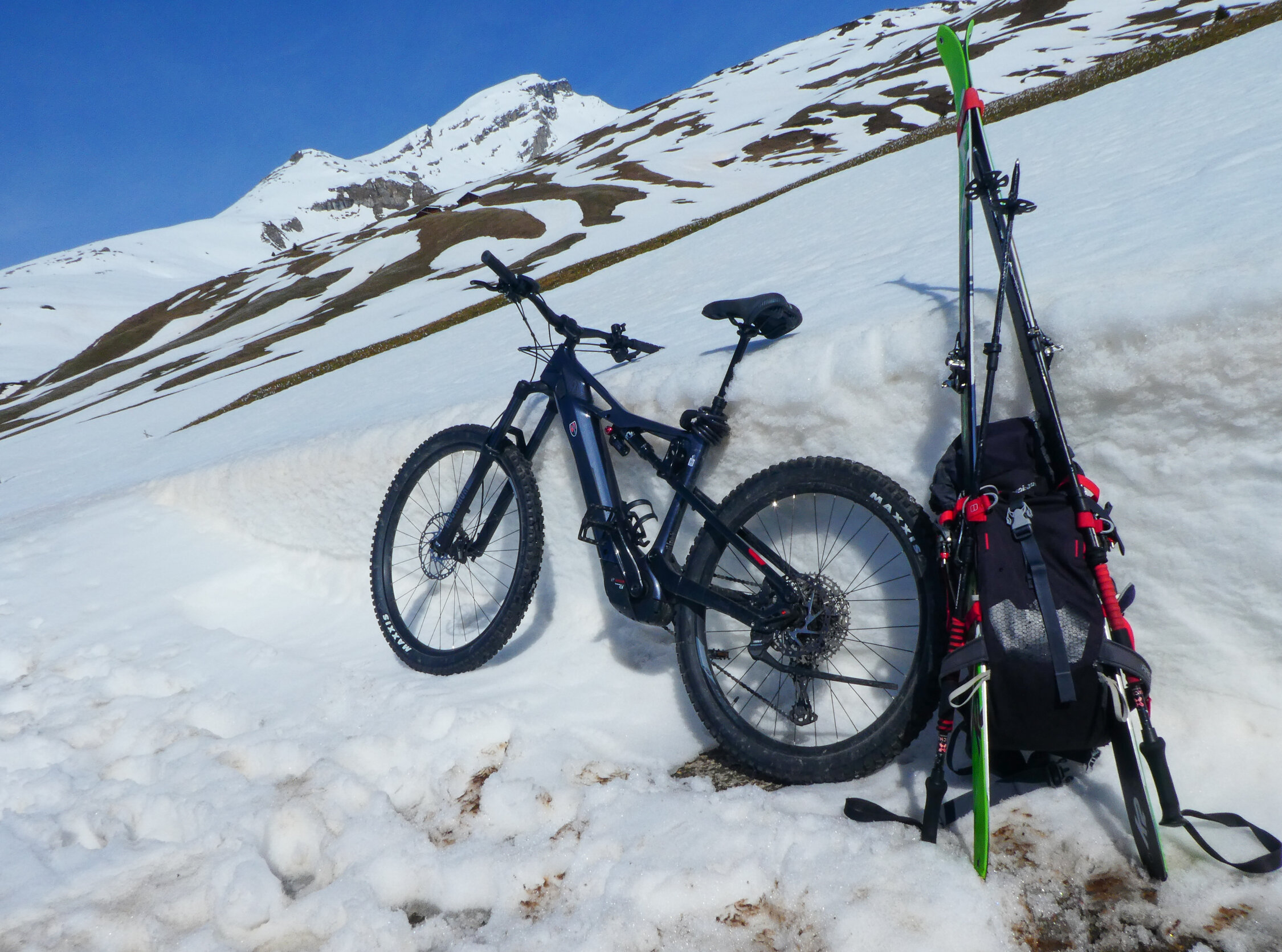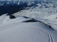 Diese Skitour macht nur noch als Kombitour (E)-MTB/Ski Sinn. Von Mathon (1547 m) mit Bike bis kurz vor Mursenas (ca. 1900 m), dann nahtlos weiter auf Ski bis auf den Piz Beverin. Prima Verhältnisse, kein Mensch weit und breit. Abfahrt nach 9 Uhr ideal, ganz oben hatte es noch etwas frisch gefallenen Pulverschnee, weiter unten ab Variantenabfahrt (vom Leiterfuss Richtung Osten) dann leckeren Buttersulz. Alpstrasse ab Mathon ist im oberen Teil noch z. T. schneebedeckt und mit PW noch nicht zu befahren (Absperrkette am oberen Dorfausgang).