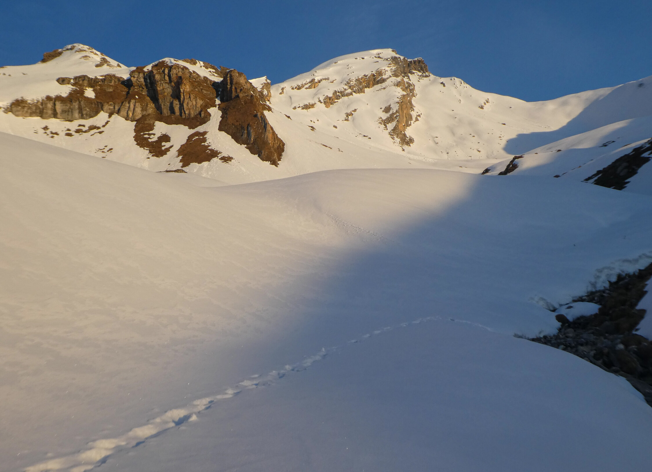 Die Tage für Skitouren auf den Bevi noch in dieser Saison sind gezählt. Morgen Sonntag aber bestimmt noch gut, wenn auch gemäss Meteo der Föhn noch einen Zacken zulegen wird.