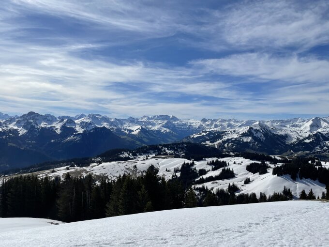 Die Bewertung erfolgt im Vergleich zur Wettervorhersage, wo von einem Föhnsturm erzählt wurde, von dem gaaaar nichts zu spüren und auch auf den hohen Gipfeln der grossen Berner nichts zu sehen war. Es war bloss zu warm, 13 Grad beim Start. Von daher wäre ein höheres Ziel sicher besser gewesen, aber ich glaubte halt den Wetterfröschen. Selber schuld. Dafür hielt diese kleine Tour ganz andere Reize bereit, so durfte ich minutenlang einem Birkhahn beim Balzen zusehen und kam bis auf 15 Meter an ihn heran! Da war der Tag schon gerettet, die Krokusmeere noch Zugabe. Ich ging nur bis auf die Oberenegg, der Weiterweg zum Hundsrügg bot skifahrerisch nichts, der Jahreszeit gemäss. Schöne längere Pause oben, 3 andere Tourenfahrer waren auch oben. Abfahrt oben soso lala, halt weich, unten gut dank der ehemaligen Skipiste.
