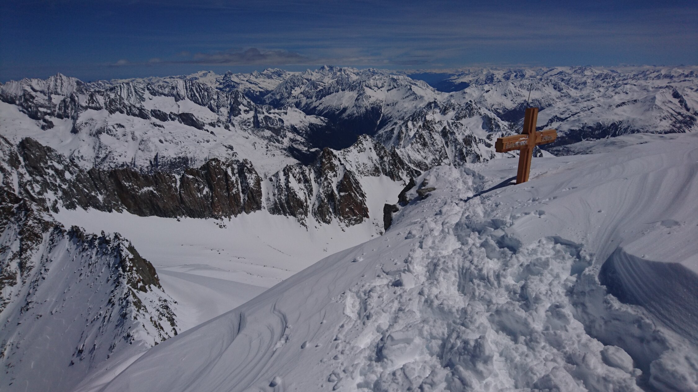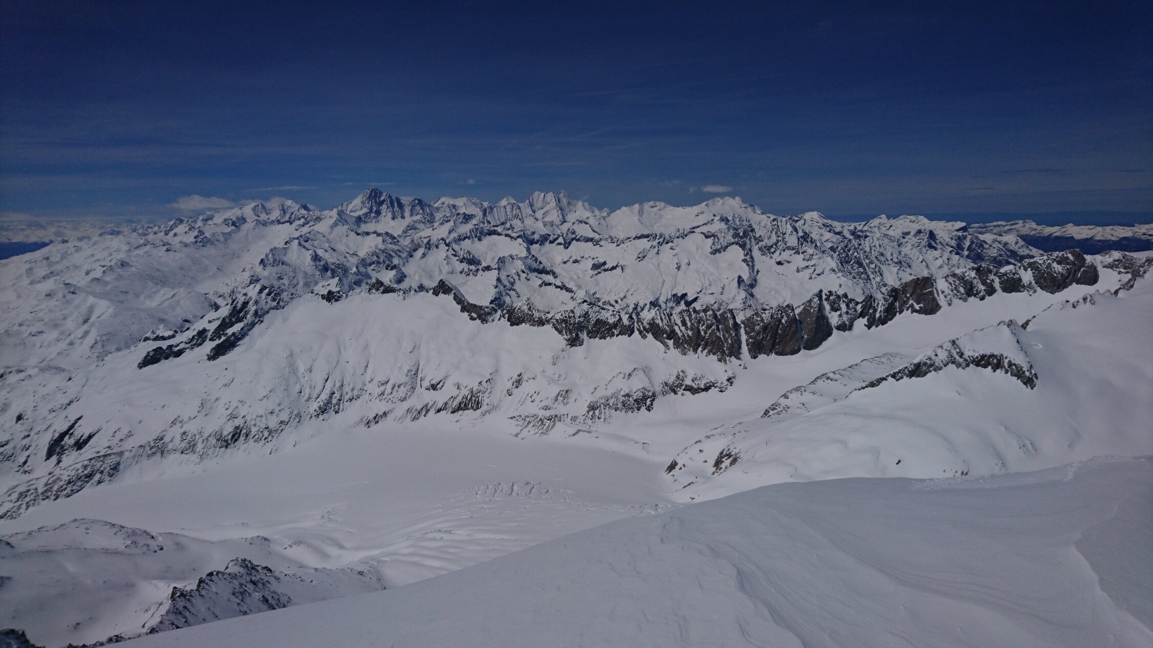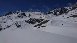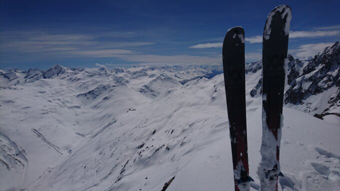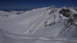 Am Start Schi kurz tragen, oben dann jede Menge Schnee. Bis 40cm Neuschnee vom Freitag. Am Vormittag noch Pulver, am Nachmittag Pappschnee vom Feinsten. Bergschrund gut gefüllt. Aufstieg zum Grat Wühlerei, haben 2 vor uns erledigt - danke :-) Am Grat dann eher wenig Schnee, gut machbar. Am Weg runter noch das Bielenhorn mitgenommen. Furkapassstrasse ein paar Kehren mit dem Auto fahrbar.