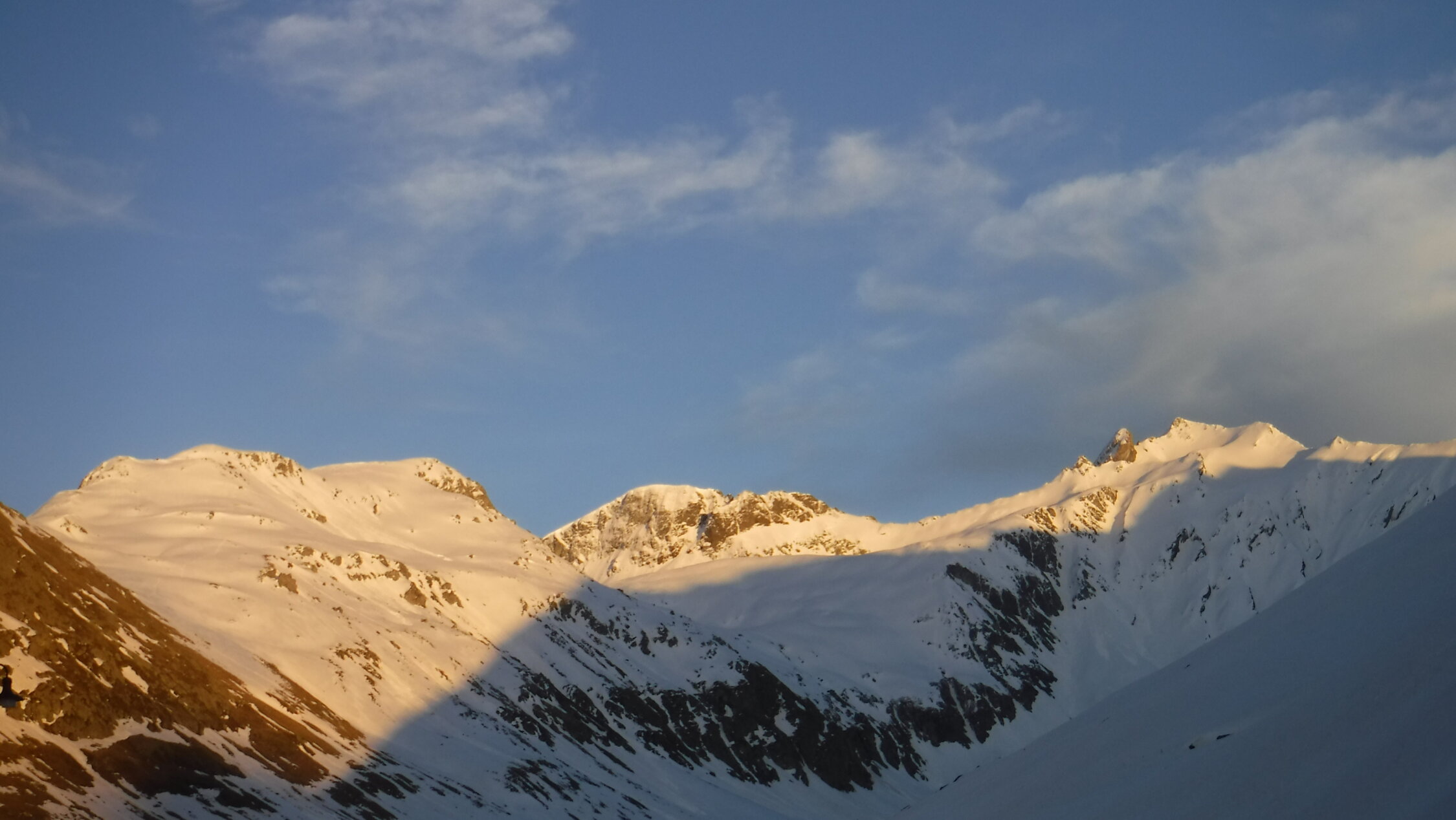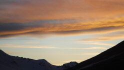 Tourenbeginn um 06:15 Uhr bei -1°C unter klarem Himmel jedoch mit böigem Südföhn. Zur Fuorcla da la Valletta hinauf / hinab liegt gerade noch so viel Schnee, dass man über diesen rauf- und runterkommt. Die Murmeltiere sind inzwischen auch über diesen unterwegs und benutzen diese als „Piste“ bergab zu ihren ausgebuddelten Höhlenlöchern.