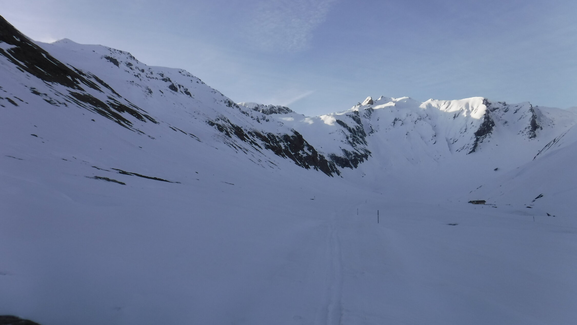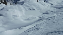 Im Aufstieg zum rechten Muldenrand oberhalb der Forcellina überholten mich 3 Skitüerler, die von Bivio kamen, so dass ich den Grat nicht mehr spuren brauchte. Heute morgen lief eine Skitourengängerin vor mir zum Jufer Horn. Nach mir folgten 5 Leute in Richtung zum Piz Piot. Ansonsten waren hier nicht mehr unterwegs.