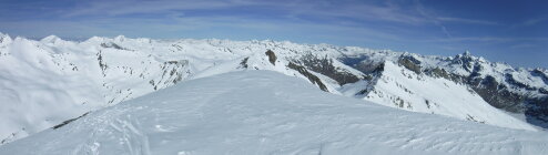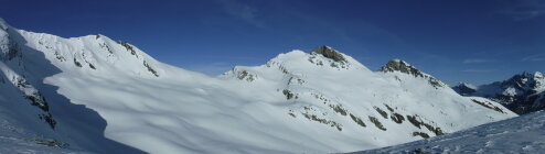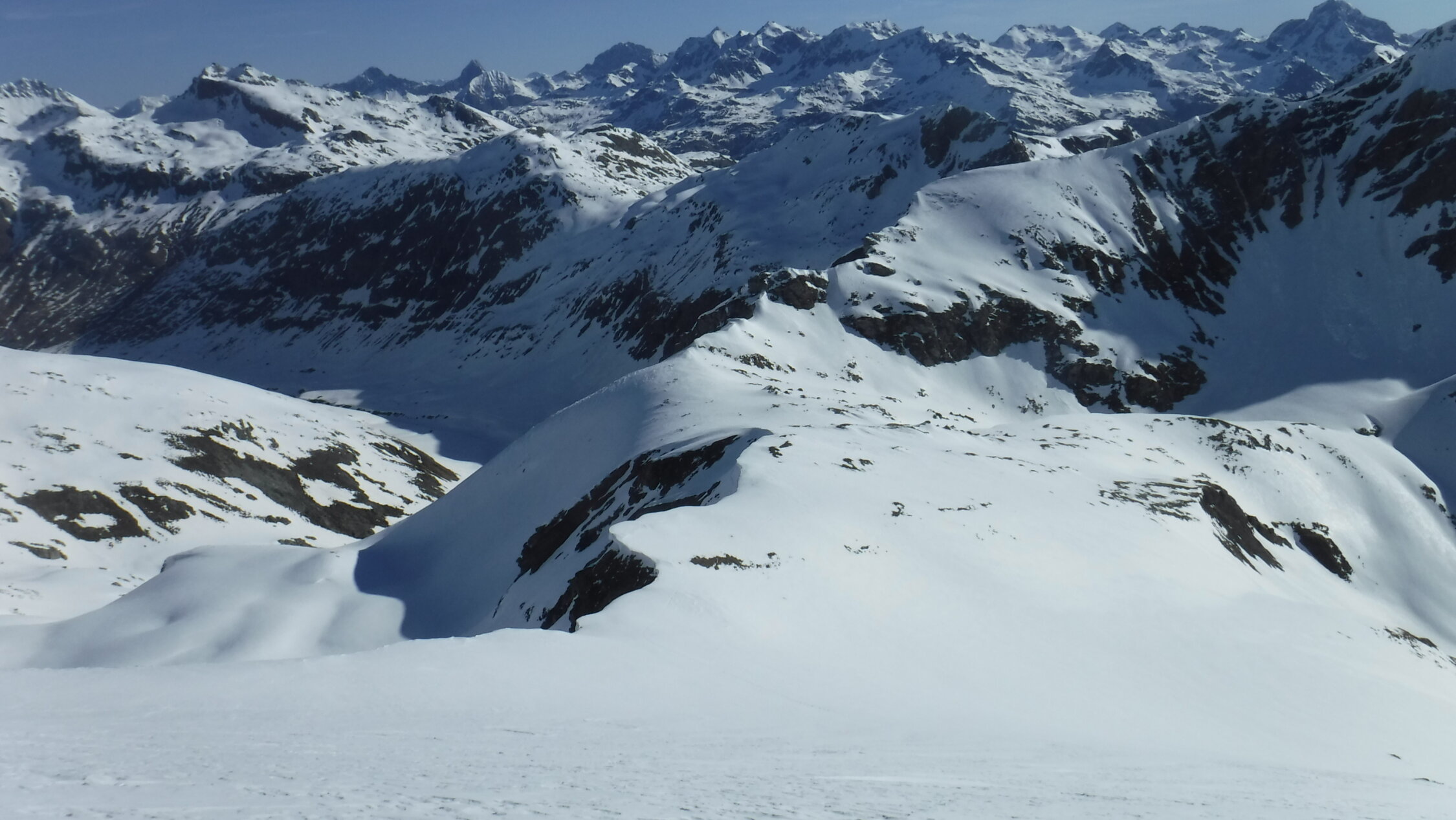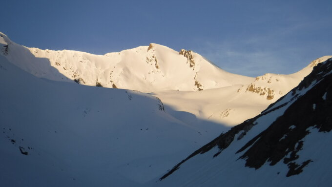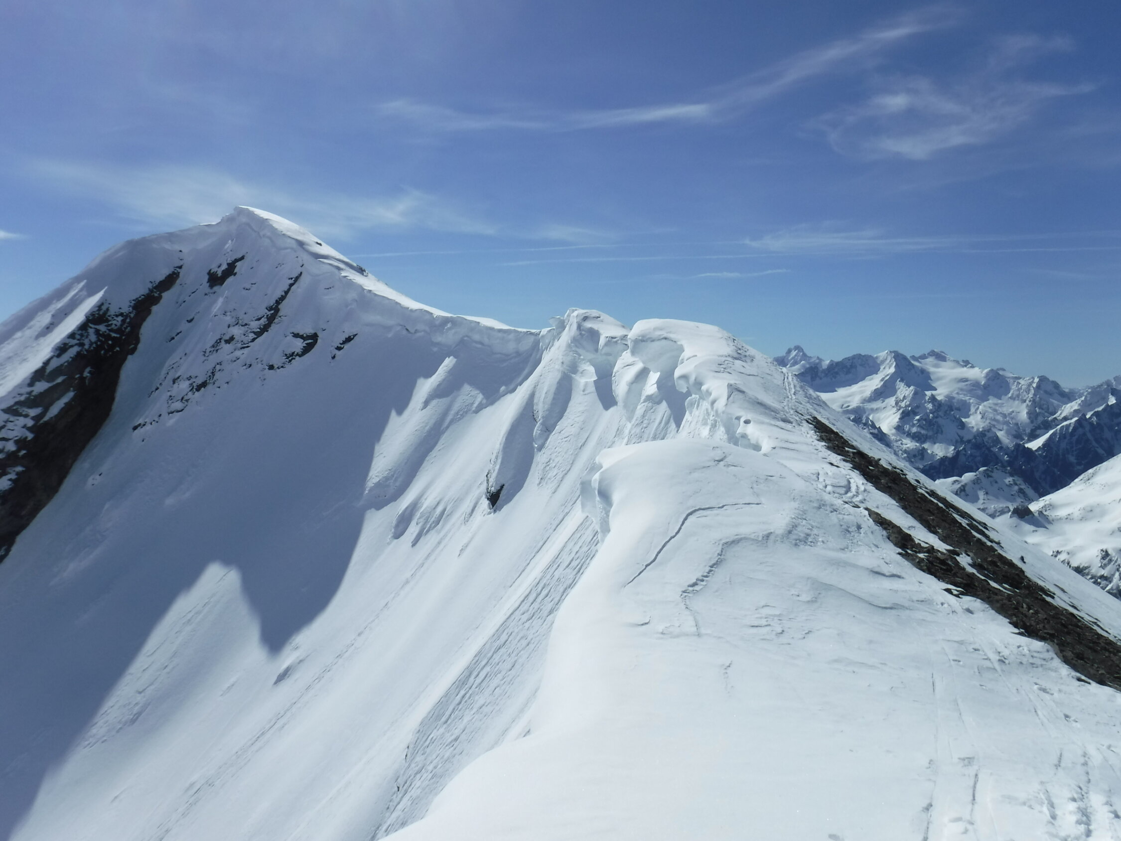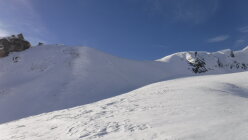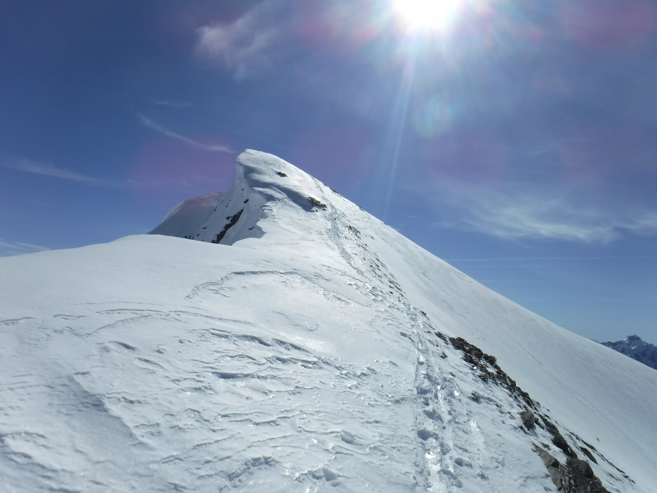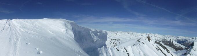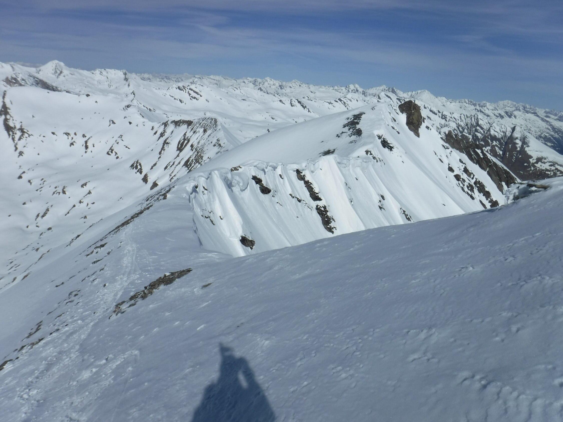 Nach mir kamen 2 Skitourengänger, welche allerdings über das Piotjoch und den Sattel P 2924 aufstiegen. Danach 3 weitere, welche über den NW-Grat im oberen felsigen Teil hochstapften und die steile Nordseite südöstlich vom P 3037 in das Piot-Becken hinabfuhren. Auf dem Nordost-Grat kam mir knapp unterhalb vom Gipfel ein Skitourenfahrer entgegen, der nach kurzem Gespräch noch zur Turba wollte. Wir waren heute die beiden einzigen, welche den Grat überschritten.