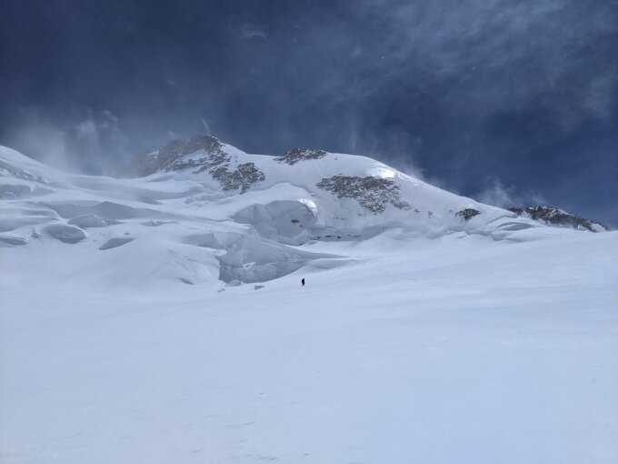 Problem war lediglich der extreme Wind, v.A. im Abstieg (und in der Abfahrt). Abfahrt von Monte-Rosa Hütte nach Furi laut Hüttenwirt nicht mehr machbar - nur noch über Sommerweg (Achtung: aktuell kurze Fahrzeiten der Gornergratbahn!). Wir mussten über die nur mehr halb-intakte Piste nach Zermatt abfahren