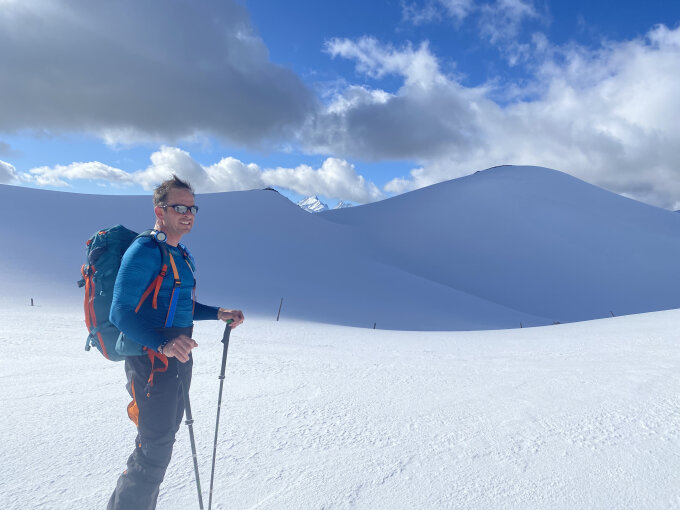 Gute Schneedecke die trägt. Richtig Spass bei Abfahrt.