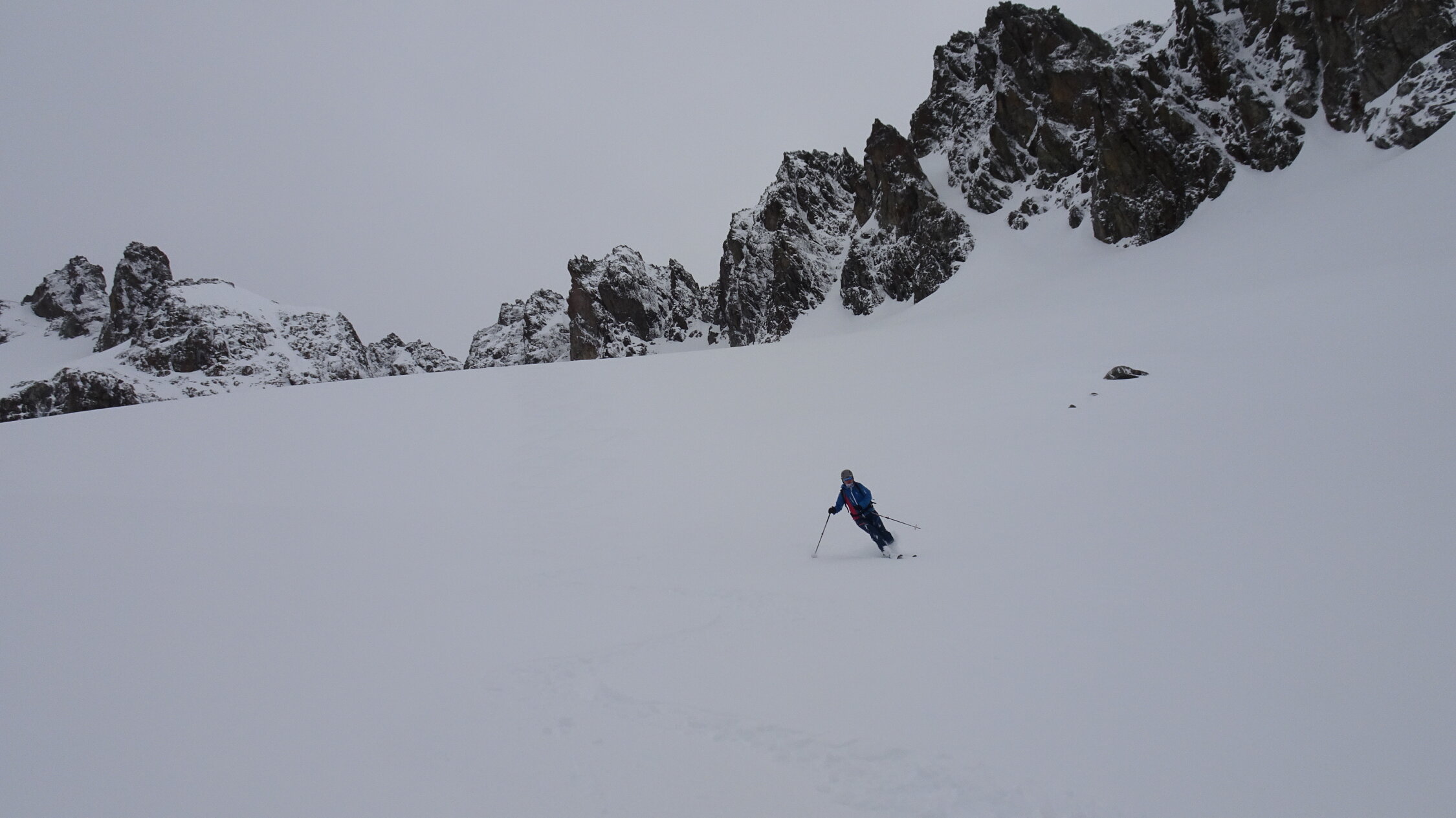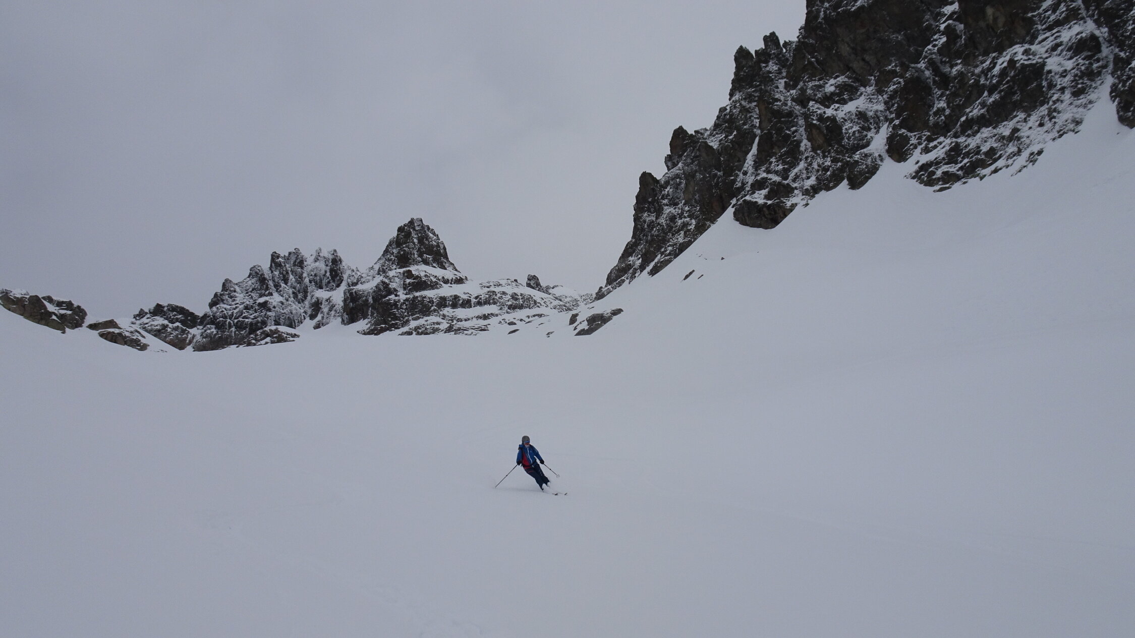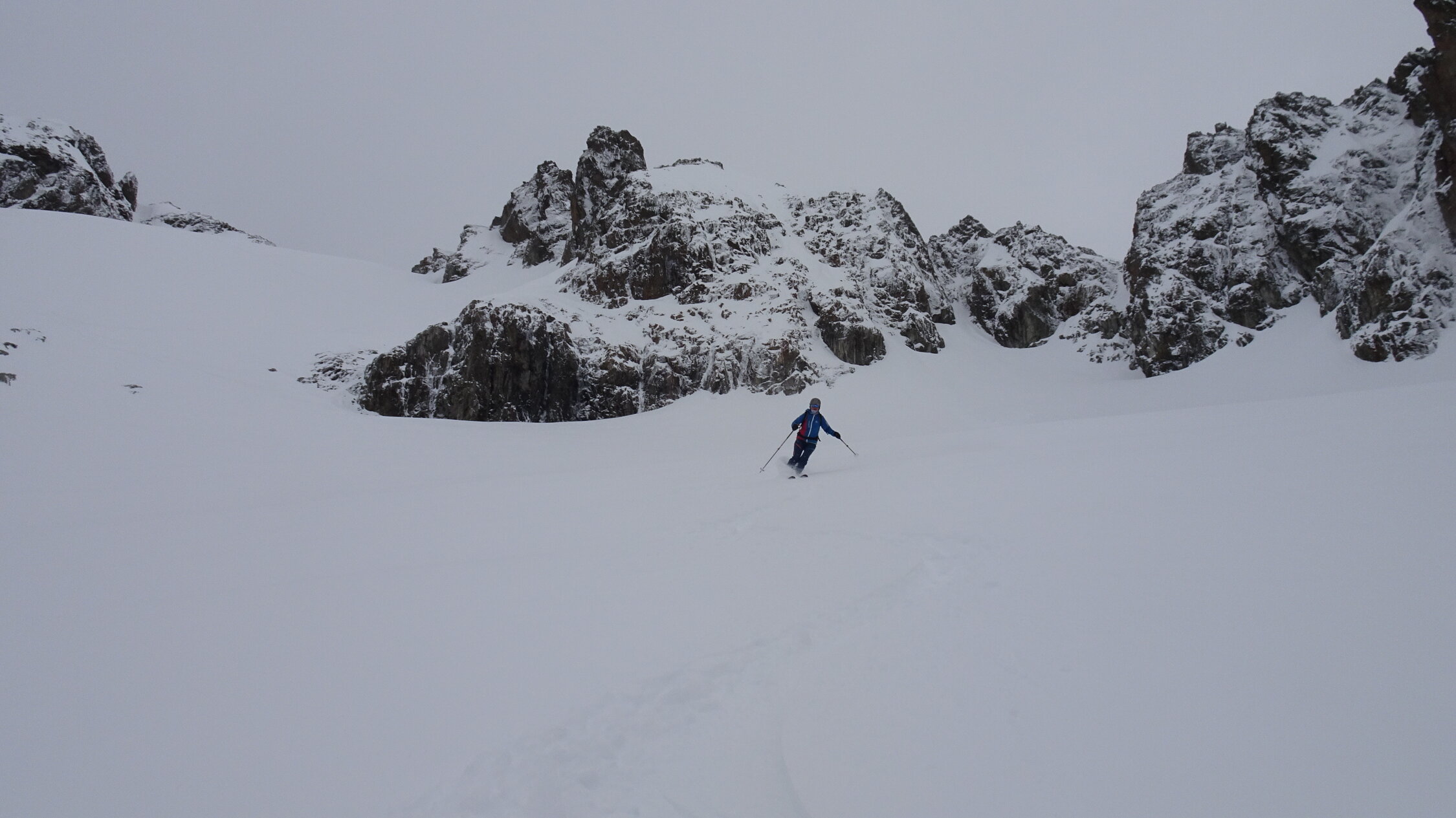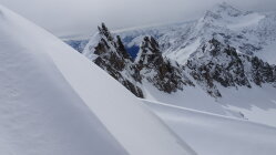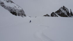 Abfahrt oben schöner Pulverschnee und unterhalb 2200m Feucht und Unterlage Nass