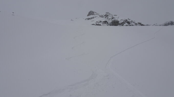 Es hat heute immer wieder intensiv geschneit so dass ich bei ca. P.2380m umgedreht habe.