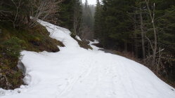 Da hatte es ca. 20cm Neuschnee und darunter konnte ich den Skistock ca. 70cm in die Schneedecke schieben und das sah ziemlich nach Nassschnee aus weiter unten.