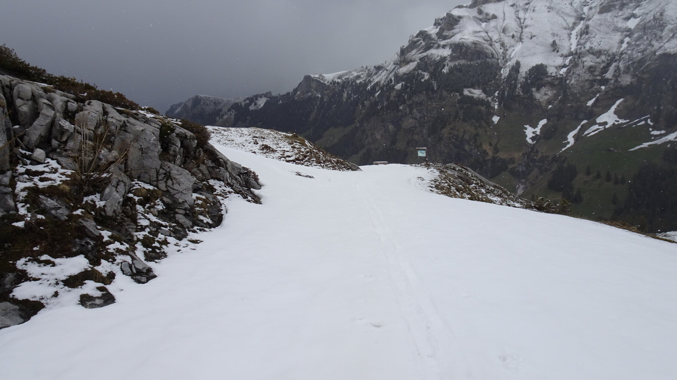 erstens waren danach die Sichtverhältnisse schlecht und der Nassschnee darunter gab mir ein Warnzeichen also entschied ich mich umzudrehen was mir vernünftig schien
